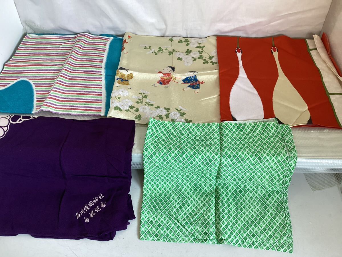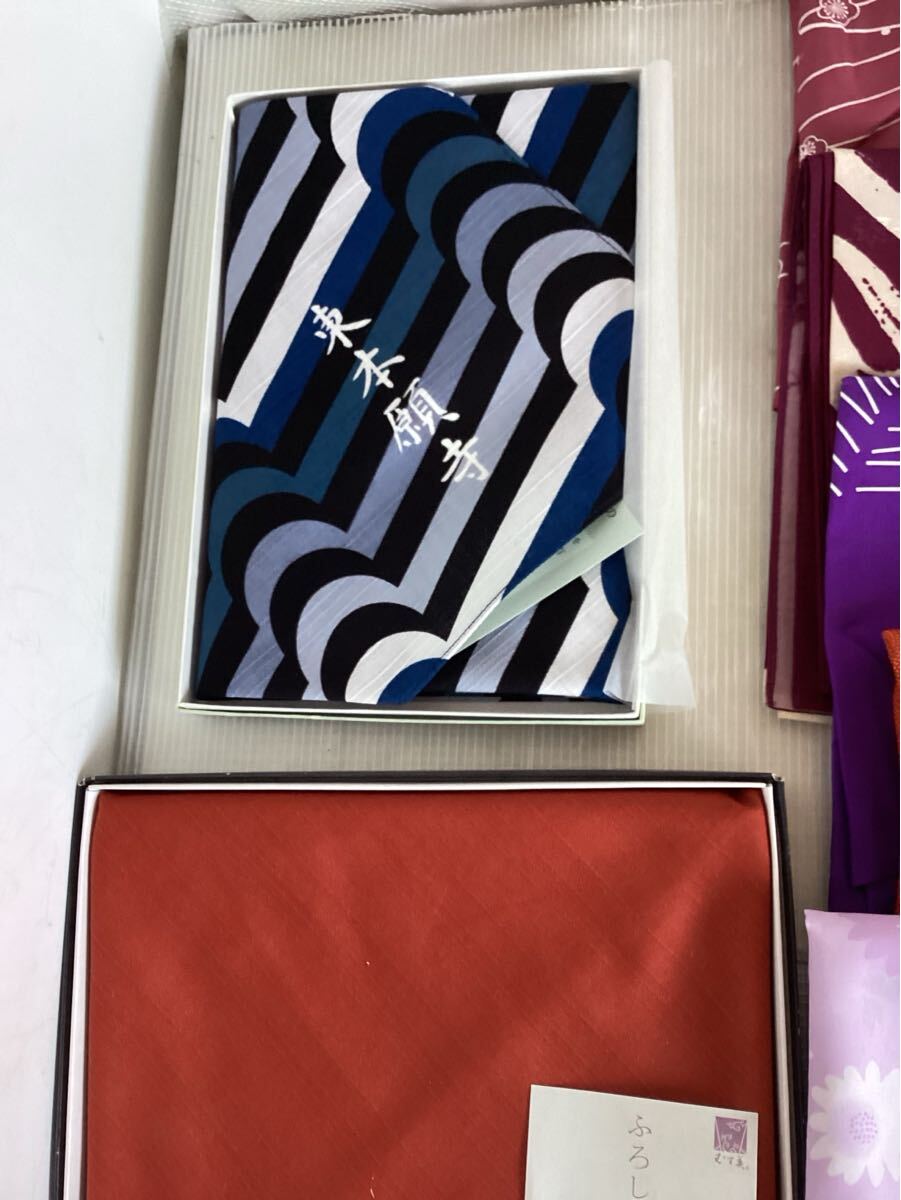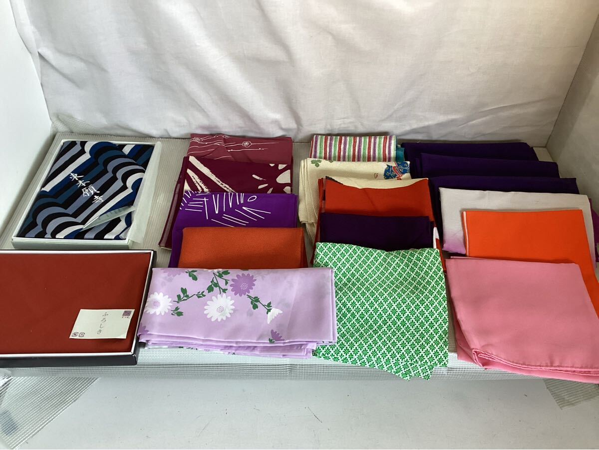 風呂敷色々あります。名前入りの物 未使用の物 折り畳みシワのある物 とあります。