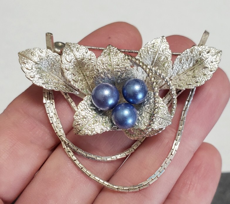 洋銀刻印 本真珠 ブローチ レディース アクセサリー 9,4g ヴィンテージ