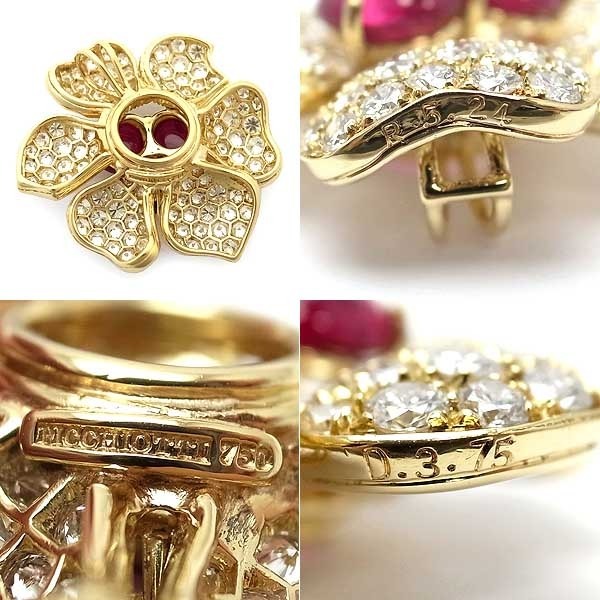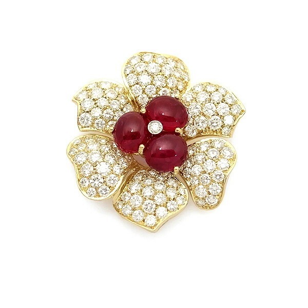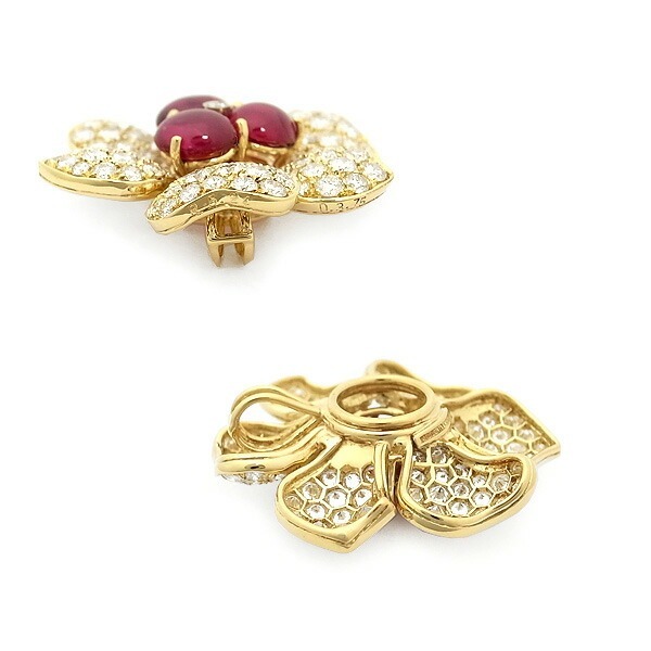 コメント イエローゴールドにダイヤモンドを敷き詰めた躍動感のある花弁、花芯には1石のダイヤモンドを添えた艶やかな3石のカボションルビーがあしらわれた、華やかさとエレガンスを醸し出すPICCHIOTTI(ピキョッティ)のペンヘッド(ペンダントトップ)です。