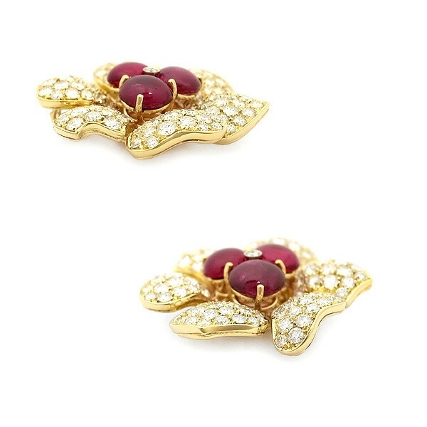 立体的に角度をつけた花弁の引き立つダイヤモンドの眩い輝きと際立つ鮮やかなルビーのエレガントなフォルムと繊細なディテール、ラグジュアリーな美しさを見事に表現したフラワーモチーフ。燦然たる存在感を放つ優美さ溢れるジュエリーです。