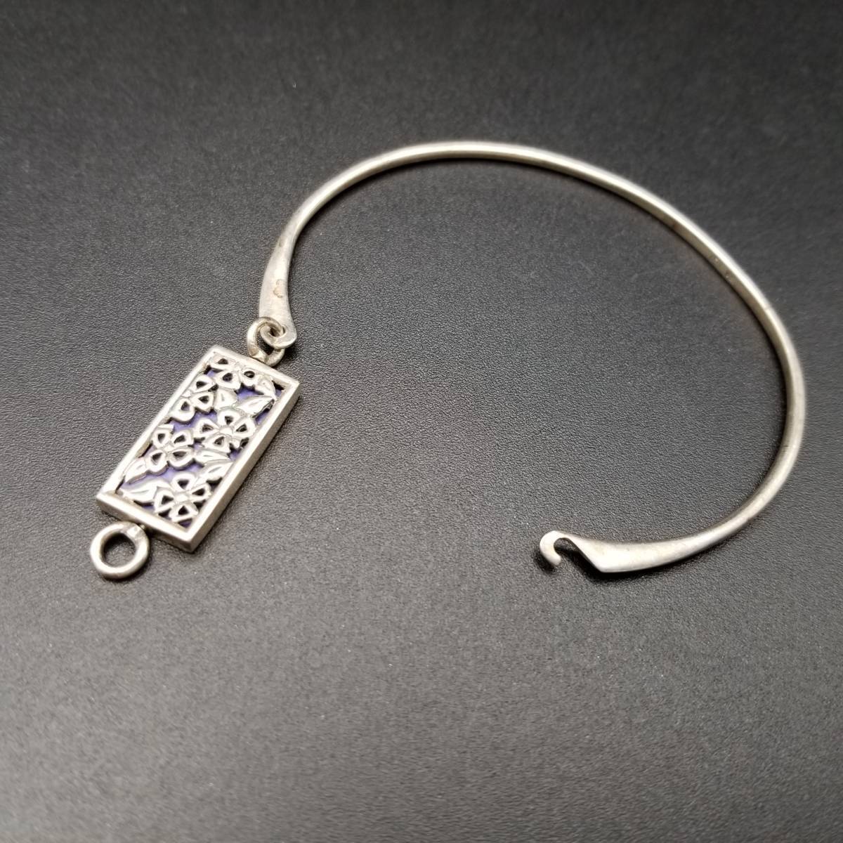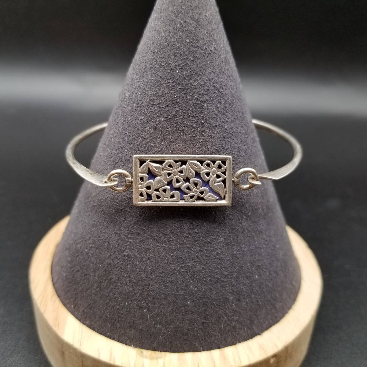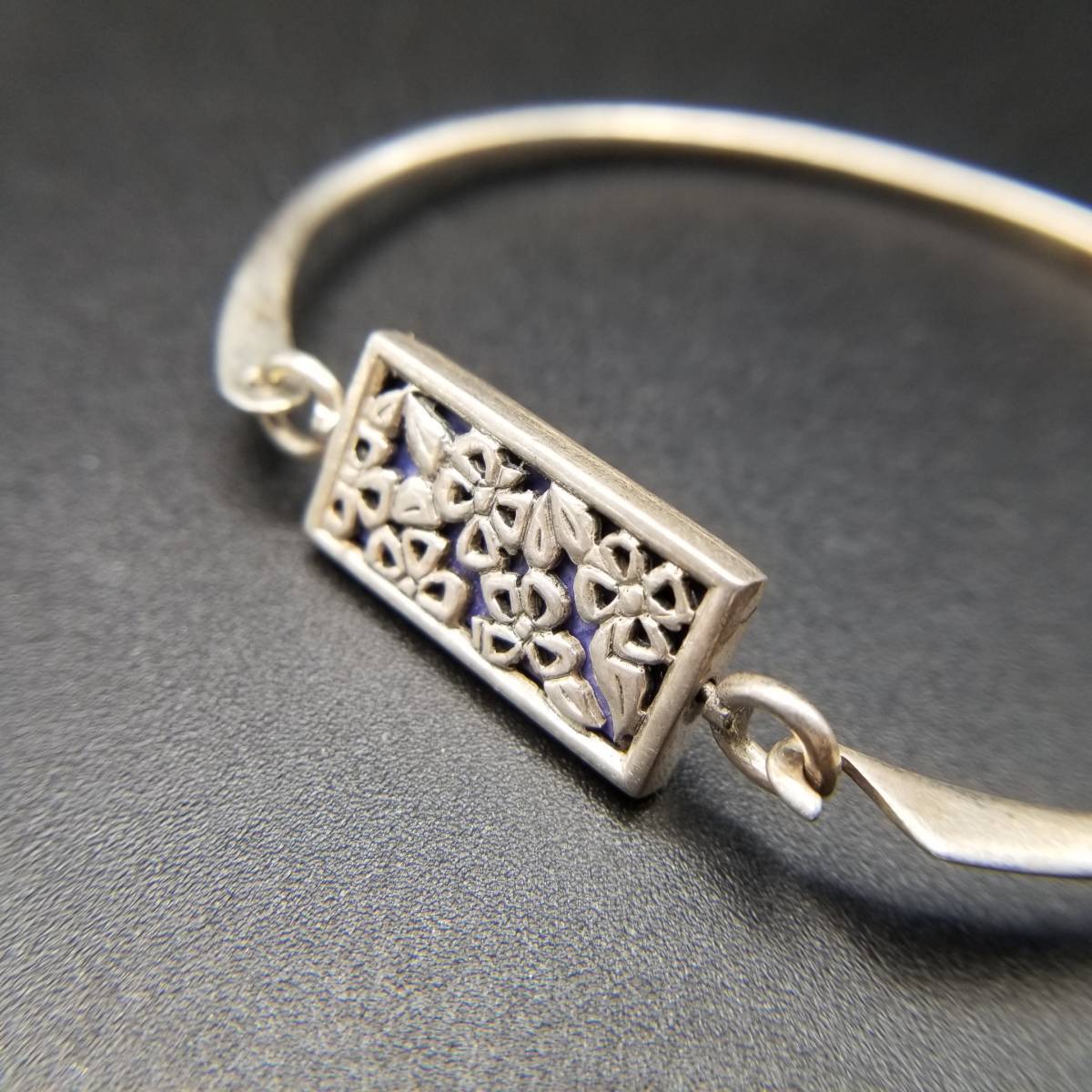 925 シルバー スクエア インレイ リーフ 植物 オープンワーク リバーシブル ヴィンテージ ブレスレット バングル ジュエリー 輸入 Y10-V
