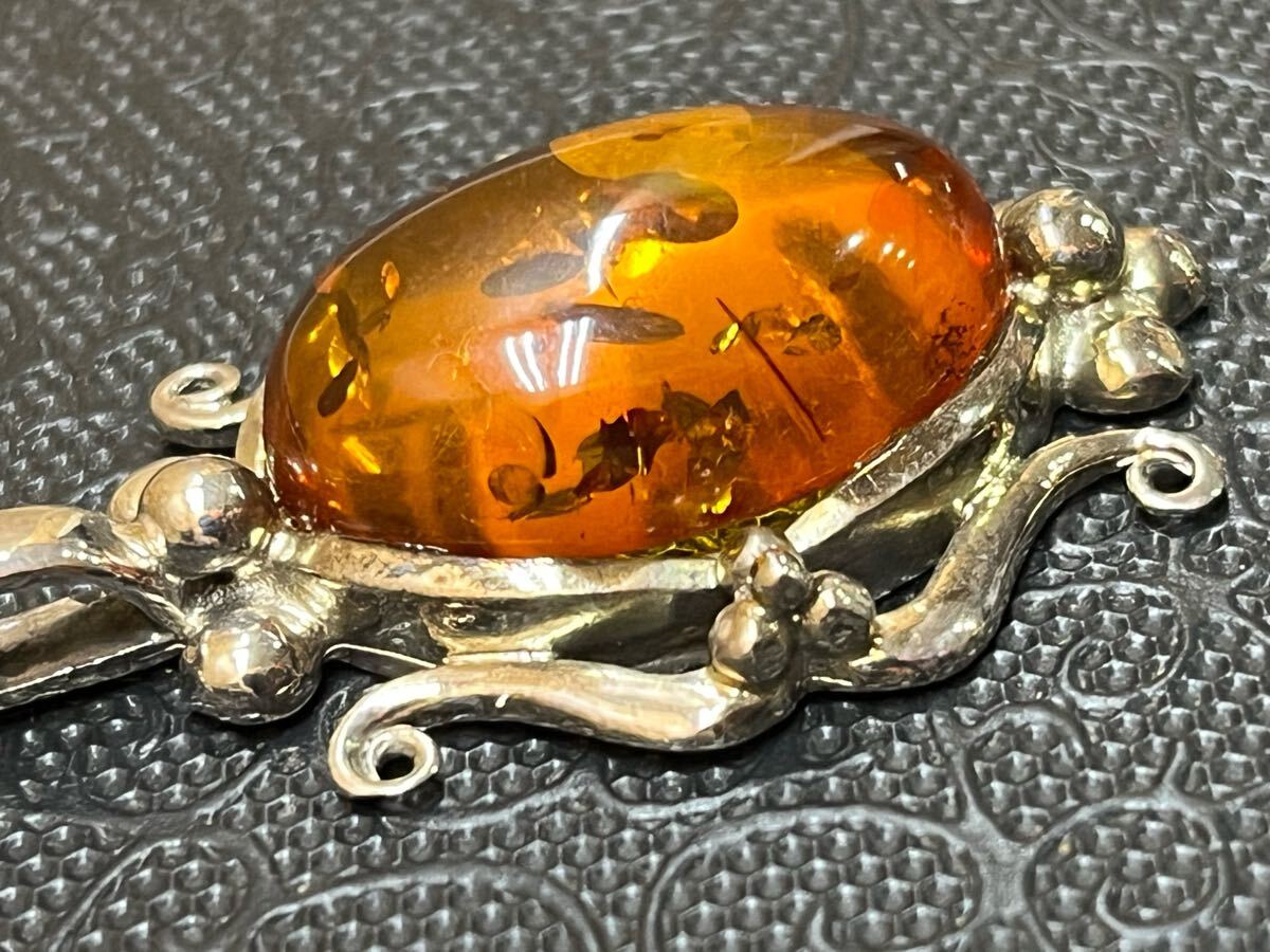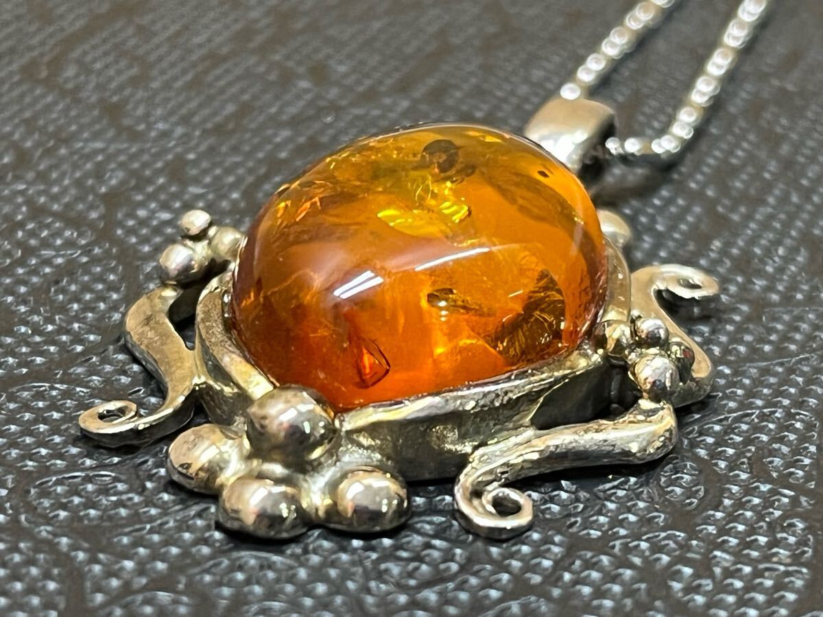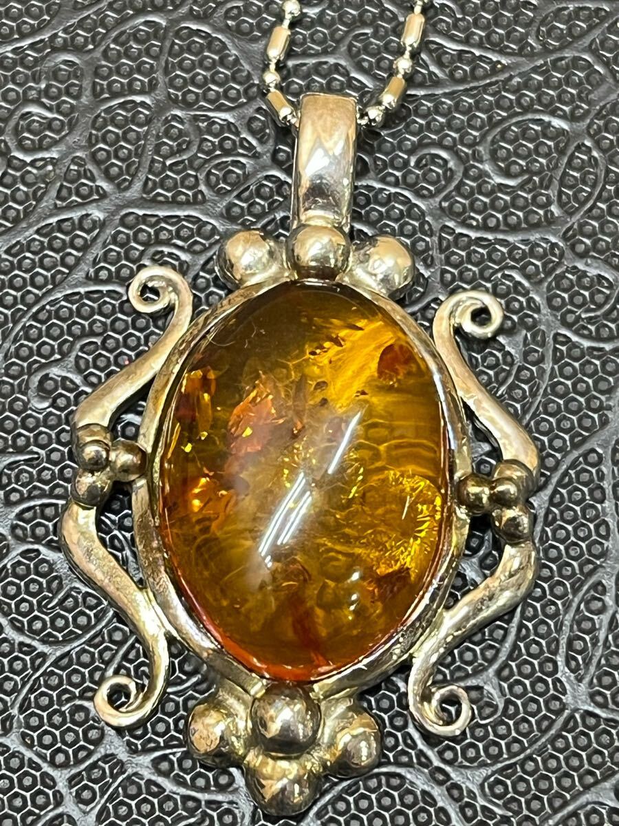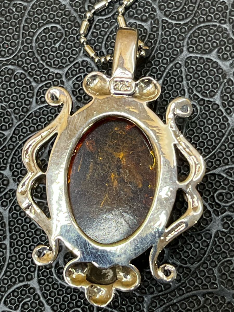 RE6196 ネックレス 925 イタリア印字あり アンバー 琥珀 アクセサリー 現状品 0711