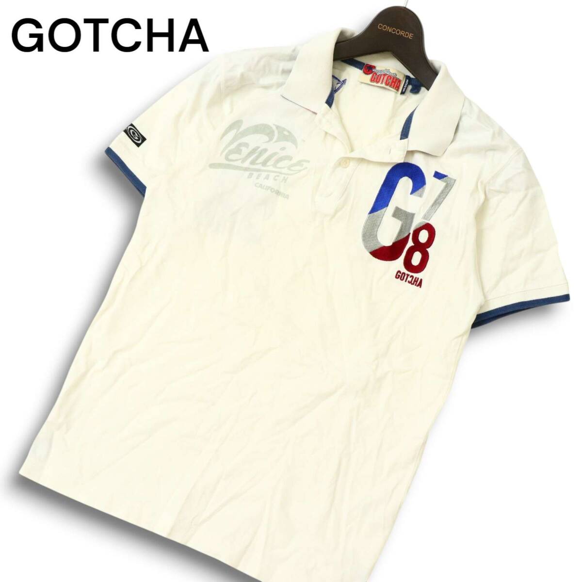 GOTCHA ガッチャ 春夏 ロゴ刺繍★ 半袖 ポロシャツ Sz.M メンズ 白 サーフ