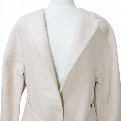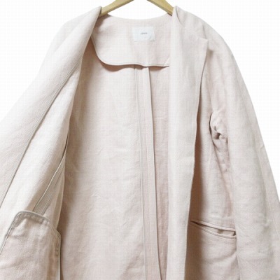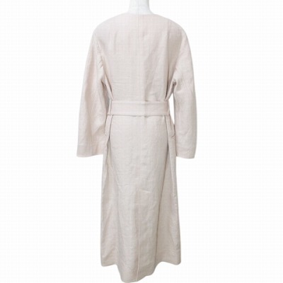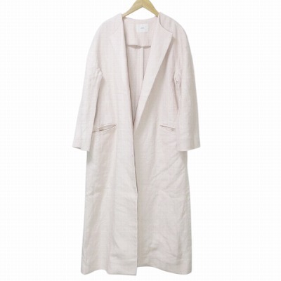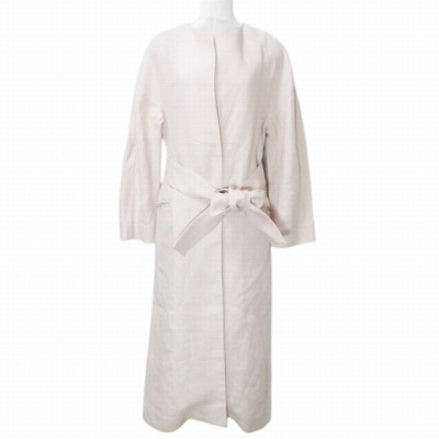 イエナ IENA 美品 20SS LINEN ノーカラーロングコート 20020900200010 リネン100% ベルテッド ボタンレス 36 S相当 ピンク X レディース
