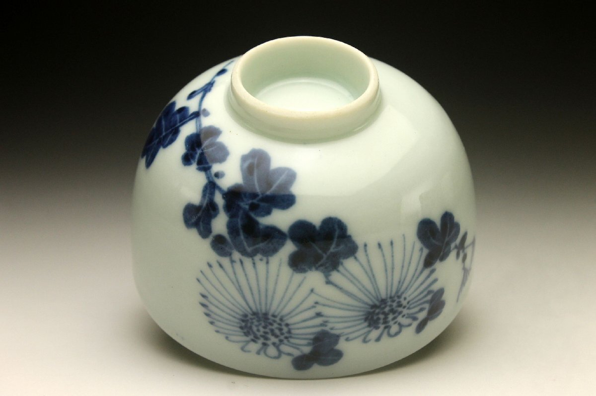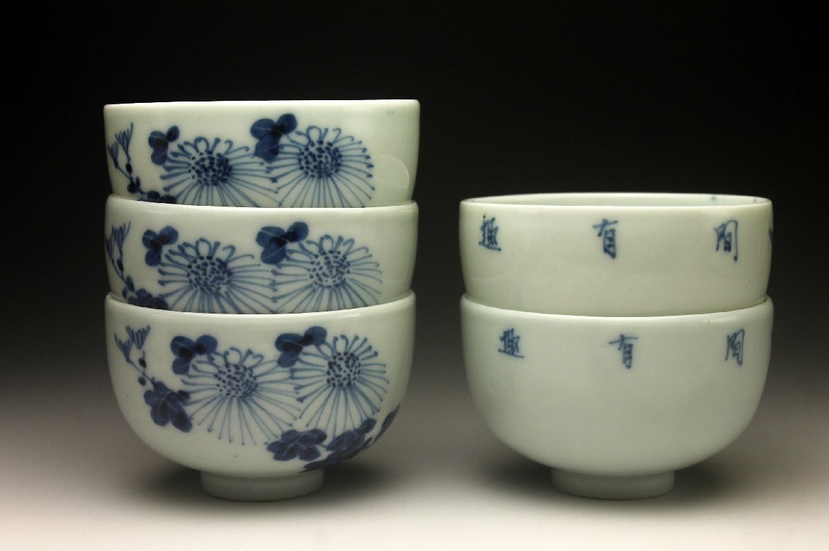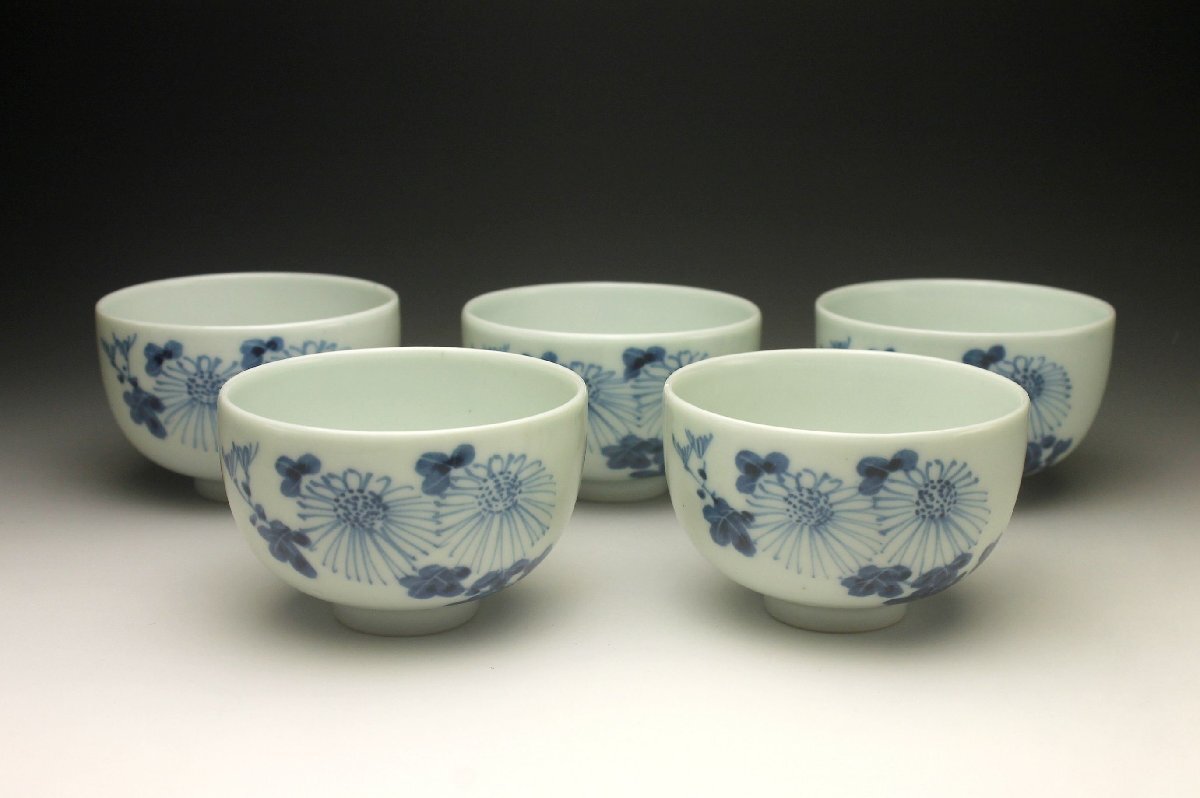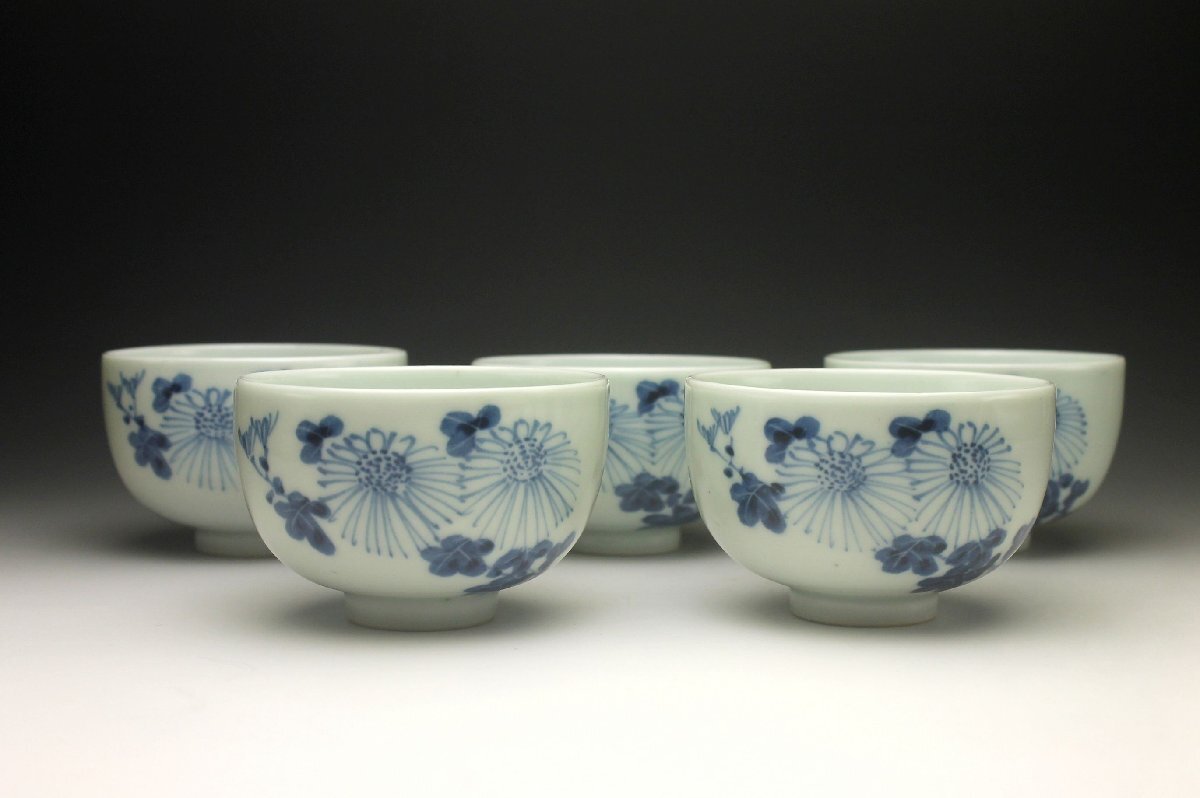 【余韻】 伊万里 染付菊文 煎茶湯呑揃(5客)★無傷美品 茶道具<同梱可>