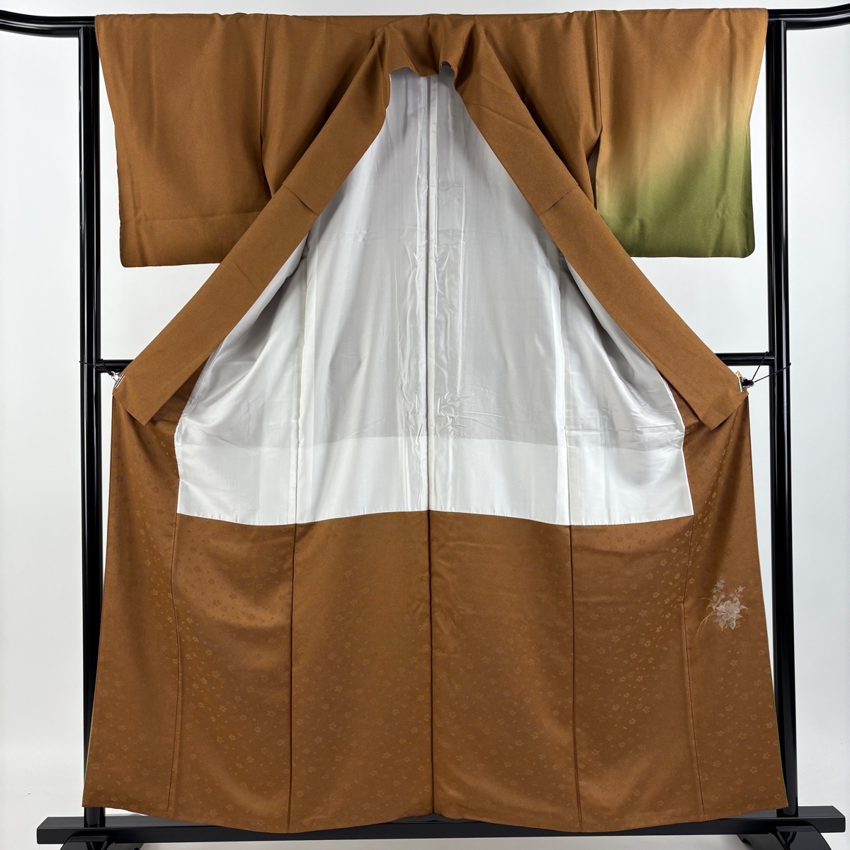 | 付下げ 美品 秀品 鮫 裾ぼかし 茶色 袷 身丈158 裄丈62.5 S 正絹 【中古】 |