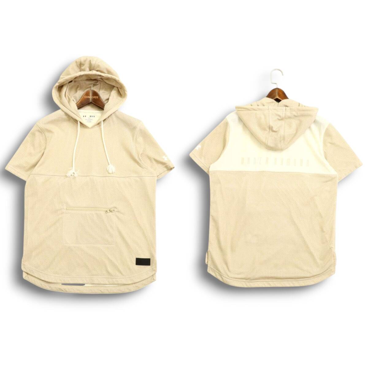 UNDER ARMOUR アンダーアーマー 春夏 バックロゴ★ 半袖 フーディー メッシュ 切替 パーカー Sz.M メンズ トレーニング
