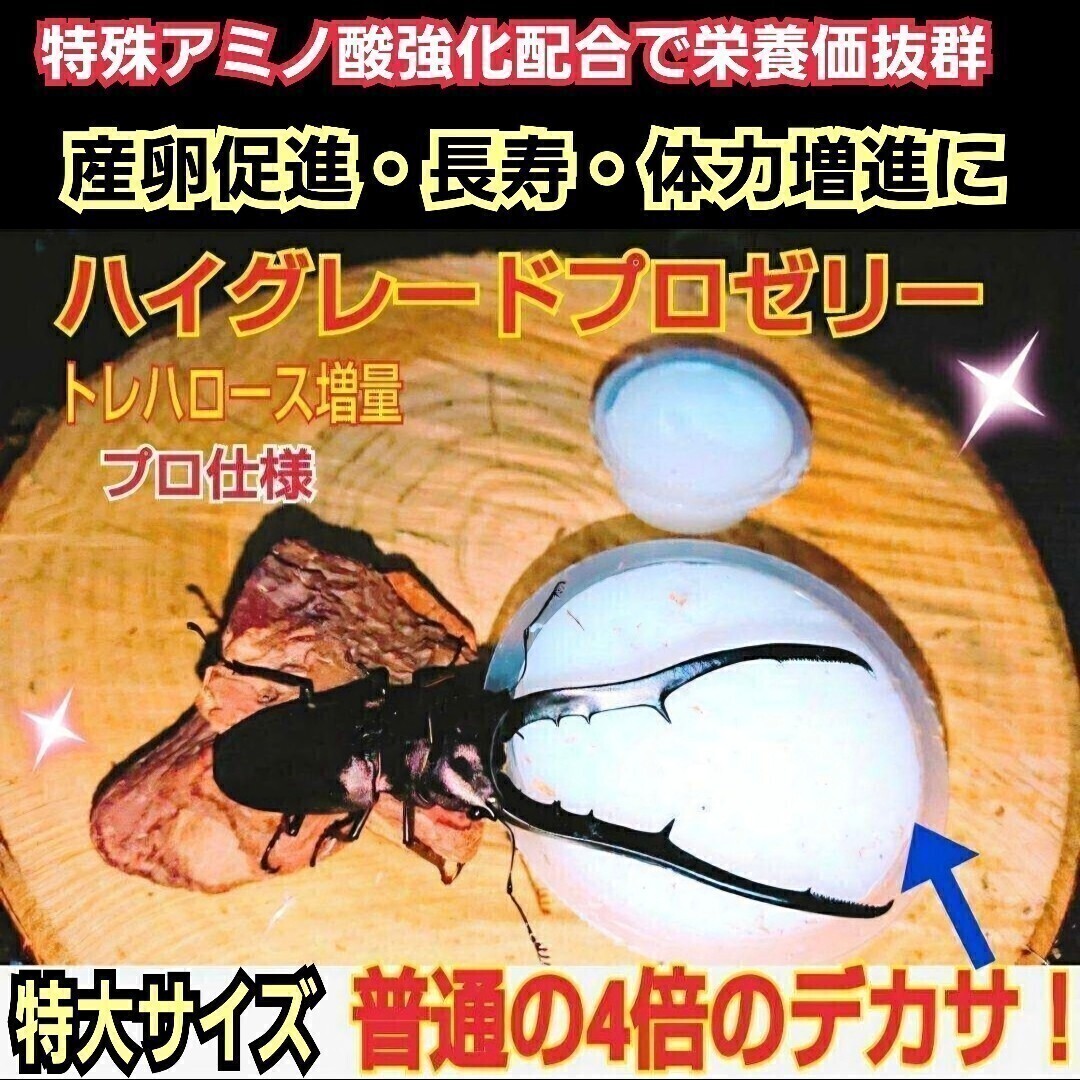 オオクワガタからミヤマ、ギラファ、ニジイロ、ヒラタはもちろんヘラクレスやコーカサスもこのゼリーで実験を繰り返し産卵数、寿命の長さが実証されてます。 30年以上クワガタ、カブトムシをブリードしてきて産卵数アップ、元気で大きく育つ為の要素を研究してきました。 その他の出品にある『プレミアム3次発酵マット』も試行錯誤して完成したものです。 今回の商品もたくさんのプロブリーダーの要望からできた超高タンパクゼリーです。