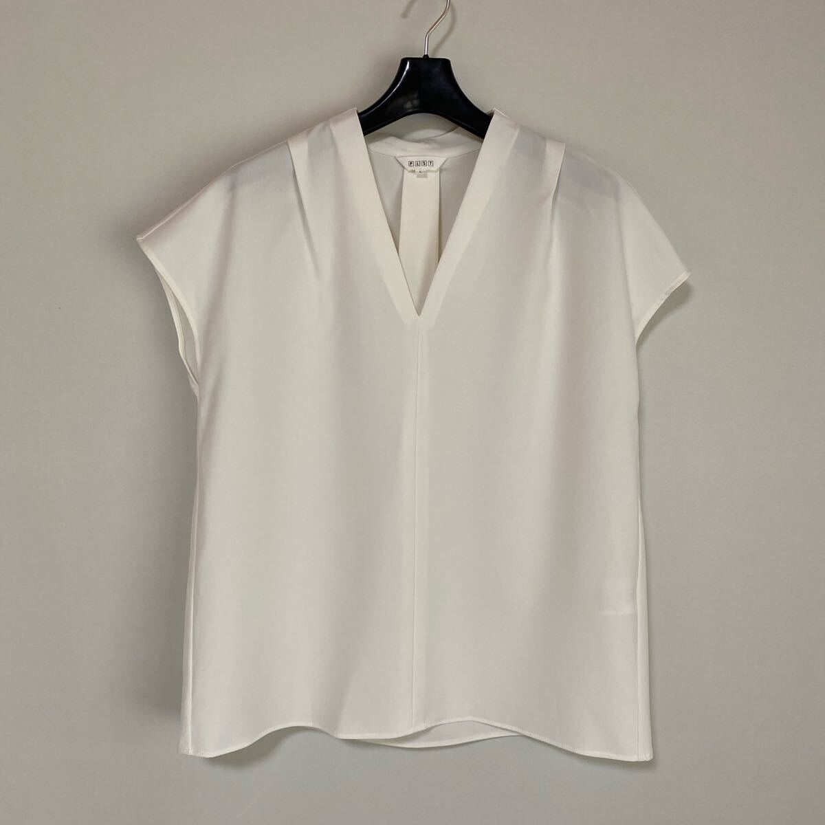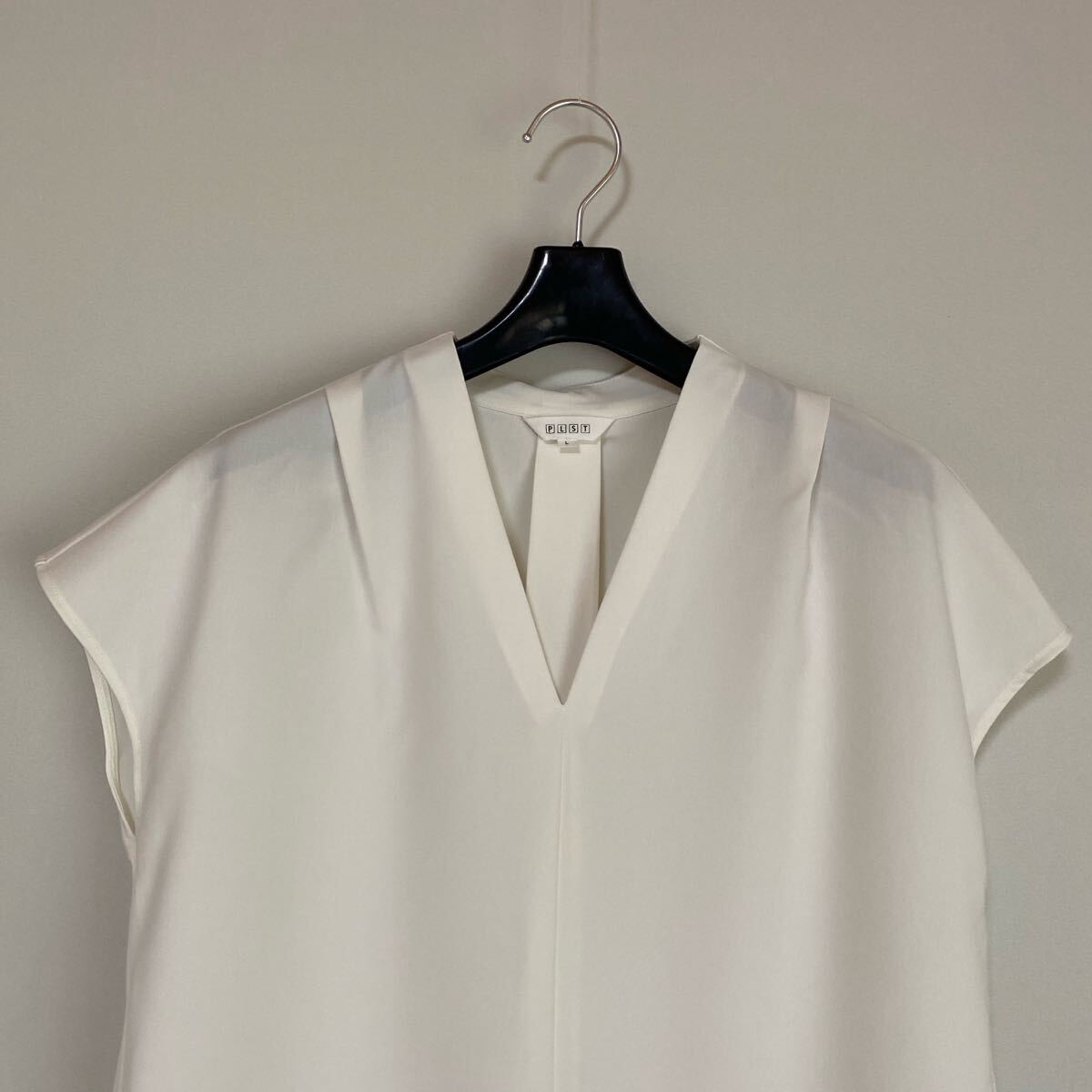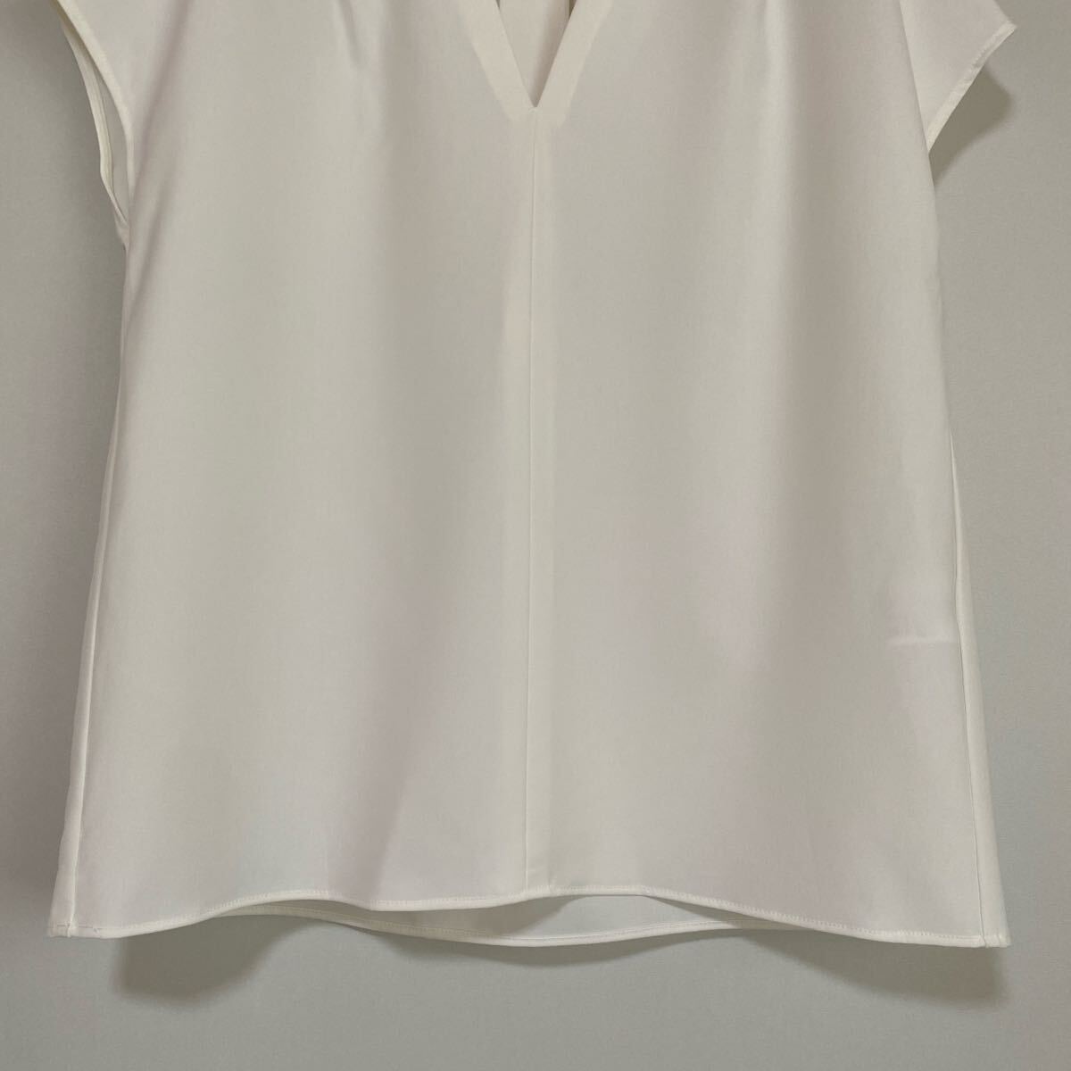 【極美】プラステ L ドライギャバ Vネック ブラウス フレンチスリーブ 白 DMW