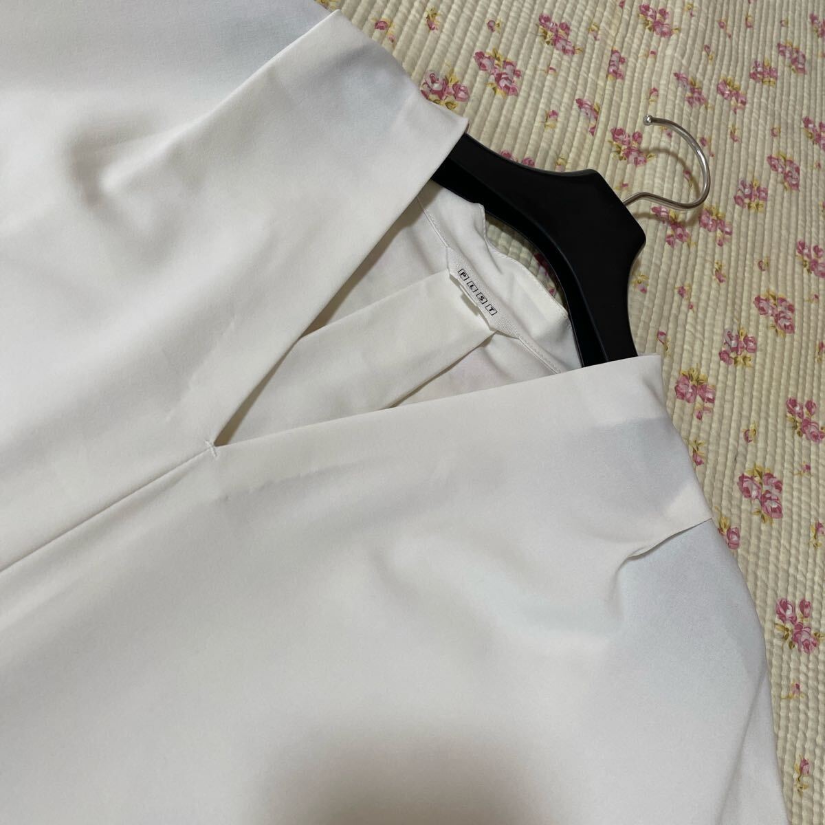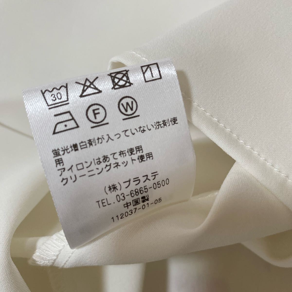 PLST(プラステ)のお品です。【新品】ブラウスをお探し方にお勧めします。スキッパーカラーで、首元がVネックのように開いているデザインなので、顔周りをすっきりと見せ、抜け感を演出します。ボタンを外す手間がなく、着脱がしやすいのも特徴です。お色は画像でご確認下さい。ホワイト(白色)です。実際のお色が良く出ています。肌触りの良い、ドライギャバ素材の軽くしっかりとした生地で、夏、サマーシーズン用です。無地で余計な装飾が少ないため、ビジネスシーンにも馴染みやすく、流行に左右されずに長く着用できます。ポケット×0。襟周りや袖口などの擦れ、色あせ、染み、汚れ、ほつれのないとてもきれいな、ブラウスです。手洗い可能。