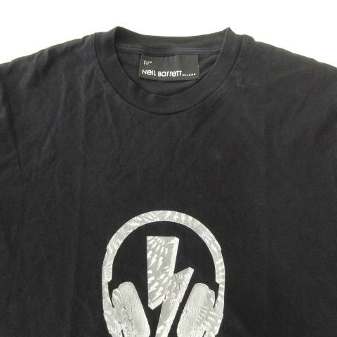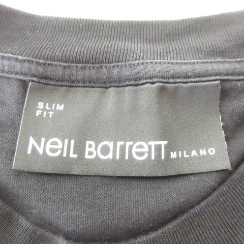 ニールバレット Neil Barrett 美品 プリント Tシャツ スリムフィット 半袖 クルーネック 薄手 約Mサイズ 黒 ブラック メンズ