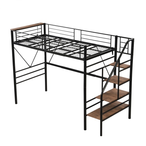 S ロフトベッド 階段付き S パイプベッド シングル コンセント付き 収納 スチール 耐震 ベッド シングル パイプベッド 【Sシングル】