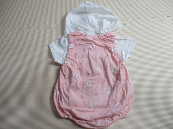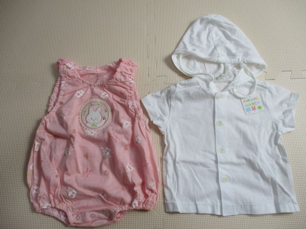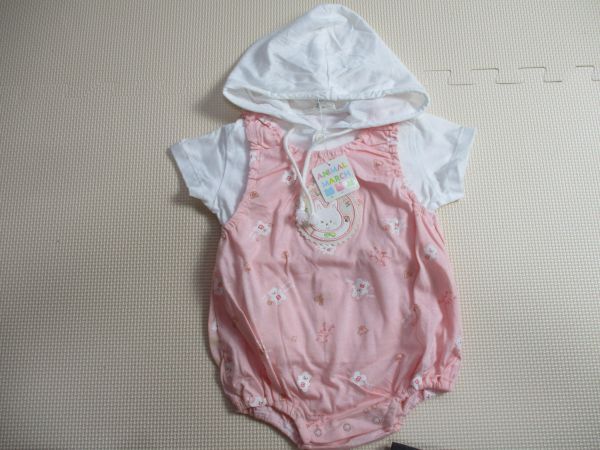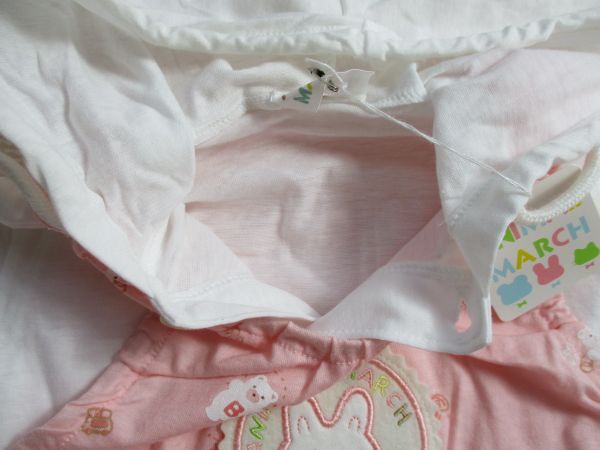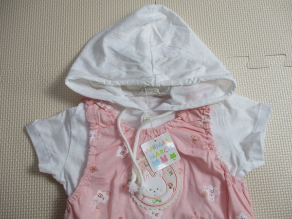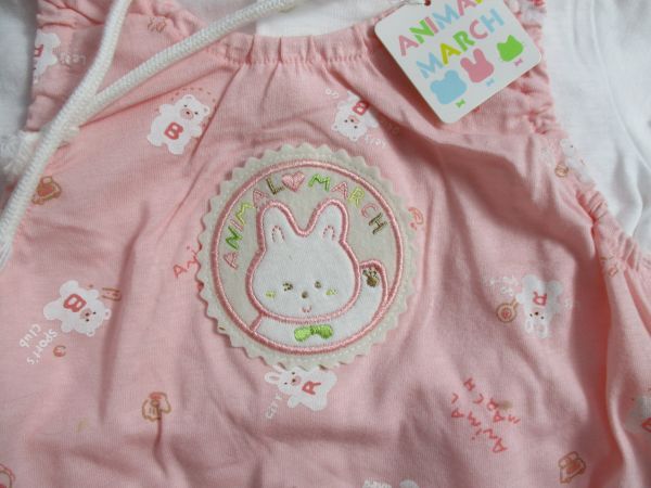 | BG552【ANIMAL MARCH・アニマルマーチ】未使用品 ロゴ刺繍プリント レイヤード シャツ&ロンパース 女児 淡赤・白 70&80 | |