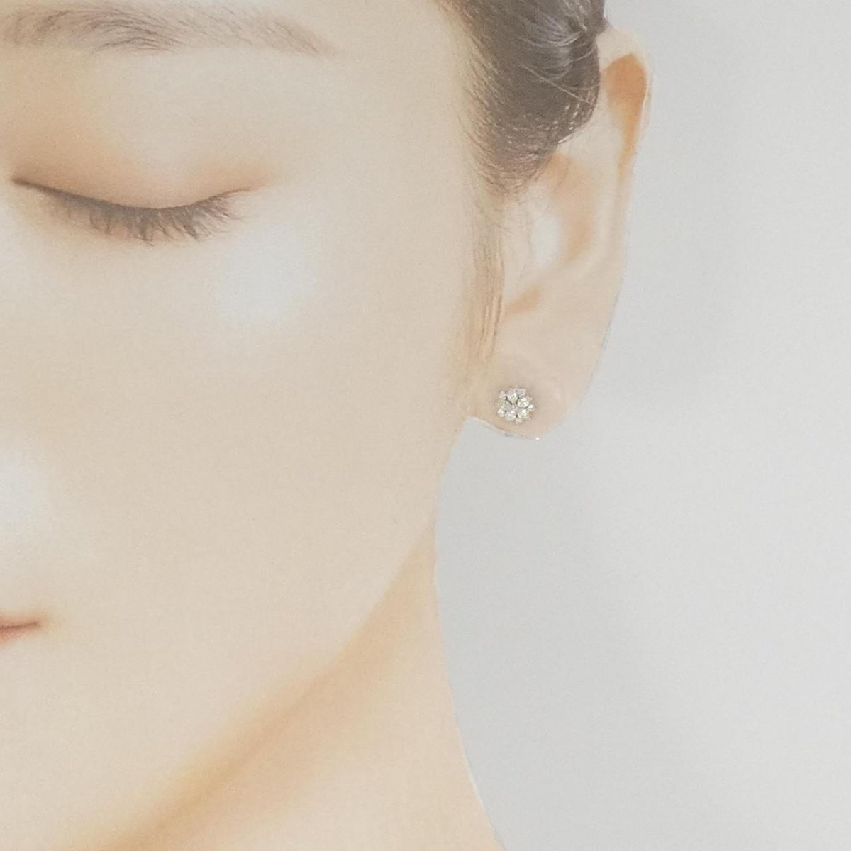 照りの良いダイヤモンドのピアス。フラワーモチーフが耳元に華やかさを添えます。