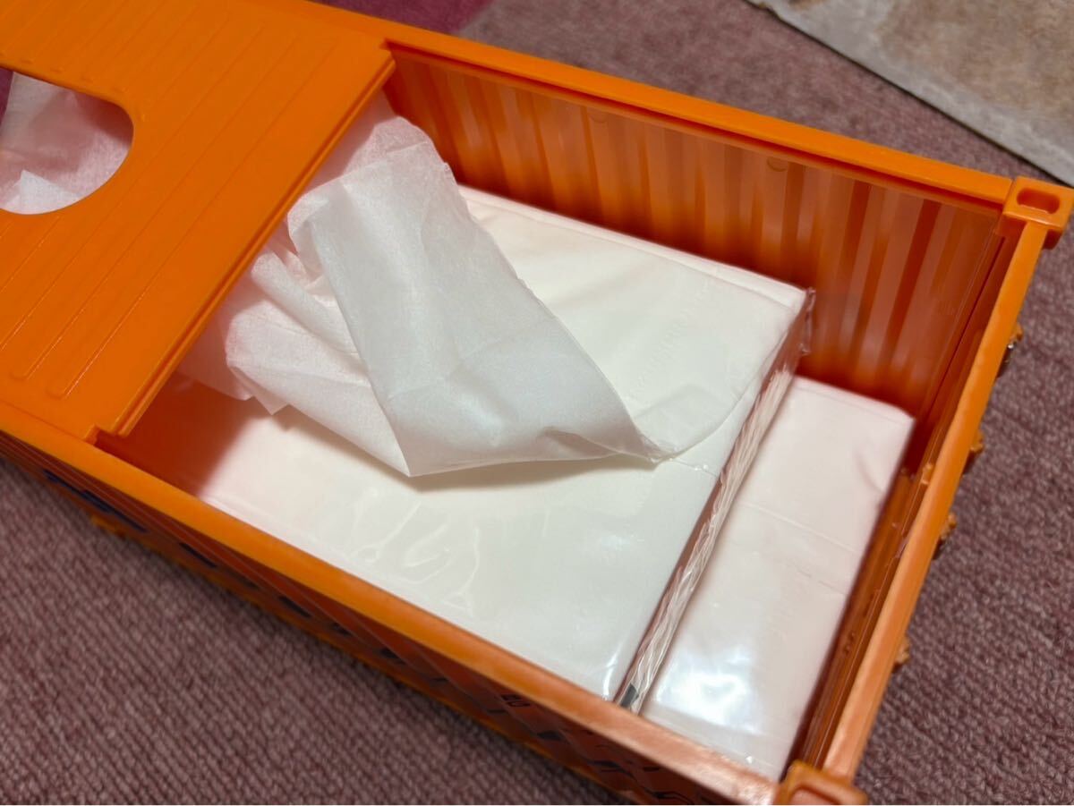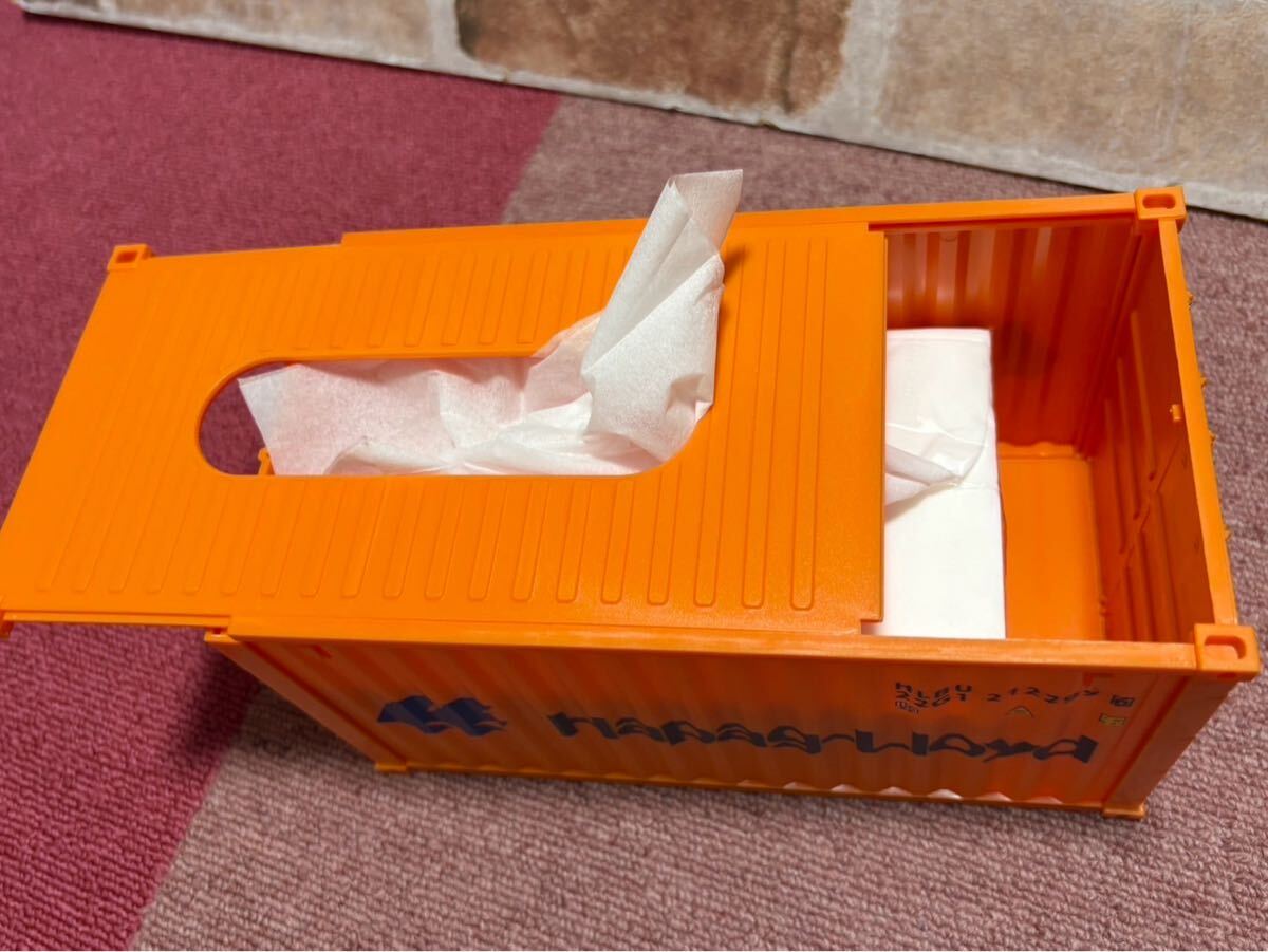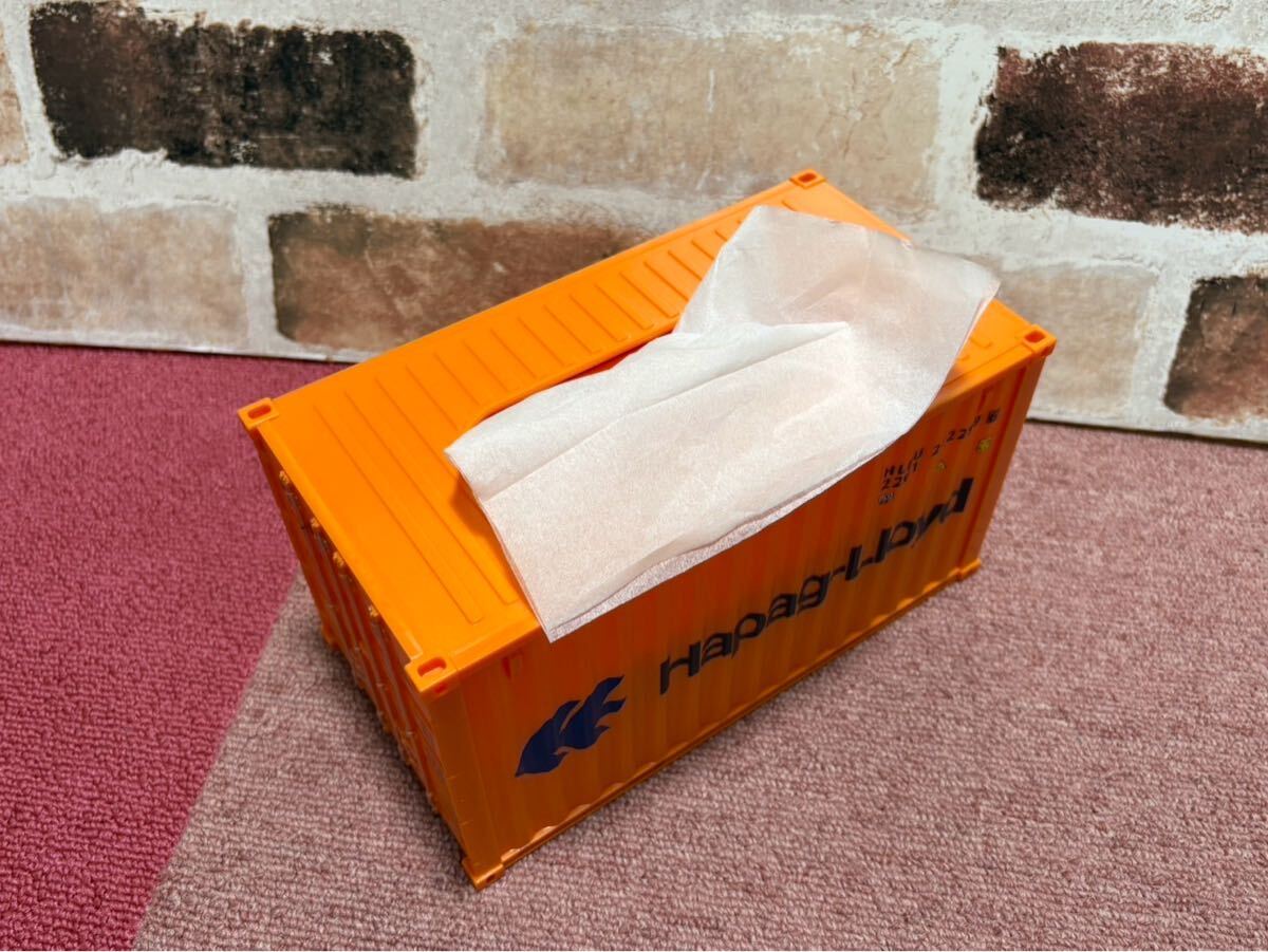 リアルなコンテナ型ティッシュケースです。ガレージやリビングのインテリアやお店のインテリアなど、どうですか?