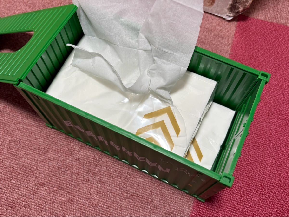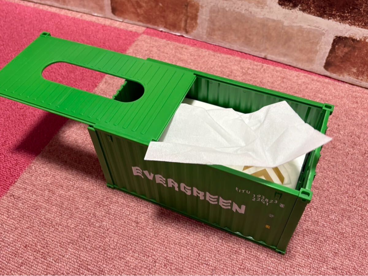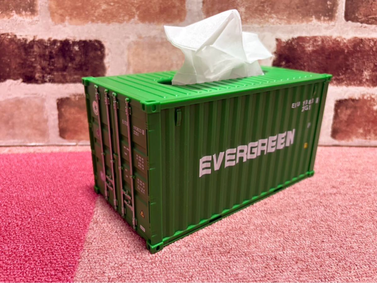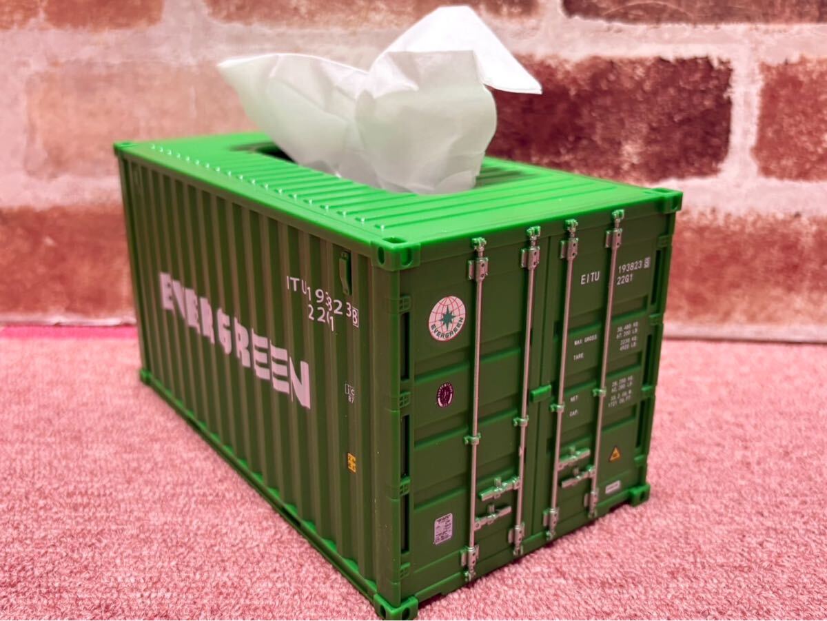 リアルなコンテナ型ティッシュケースです。ガレージやリビングのインテリアやお店のインテリアなど、どうですか?
