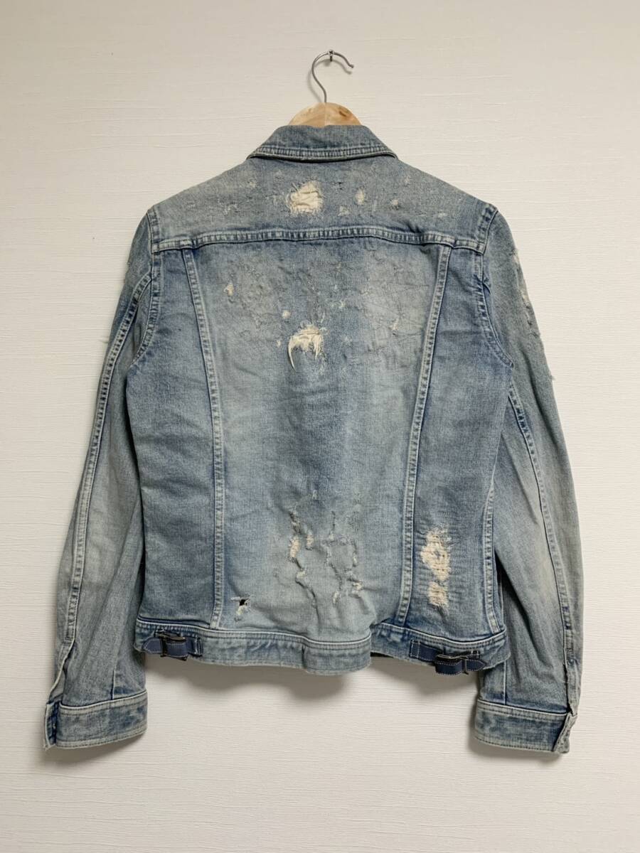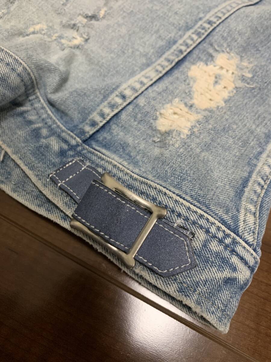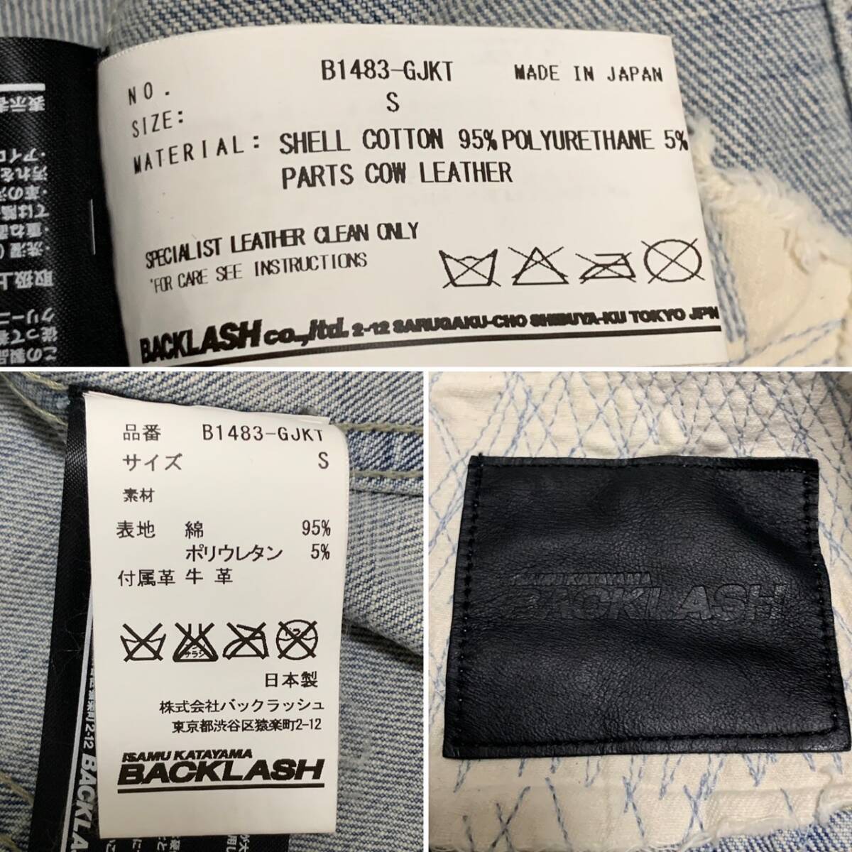 美品☆[BACKLASH] 定価52,800 B'2nd別注 ダメージ加工 レザーベルト ストレッチ インディゴデニムジャケット S B1483-GJKT バックラッシュ