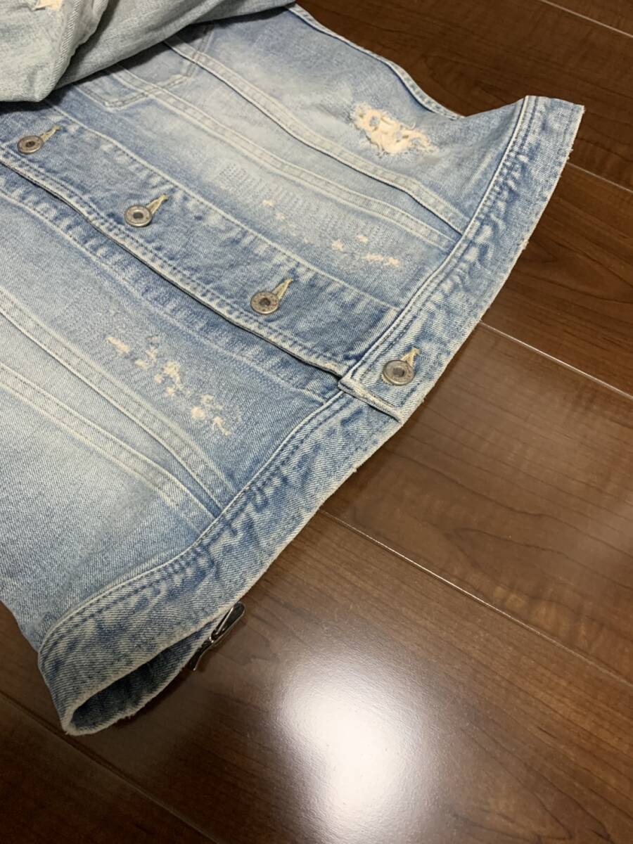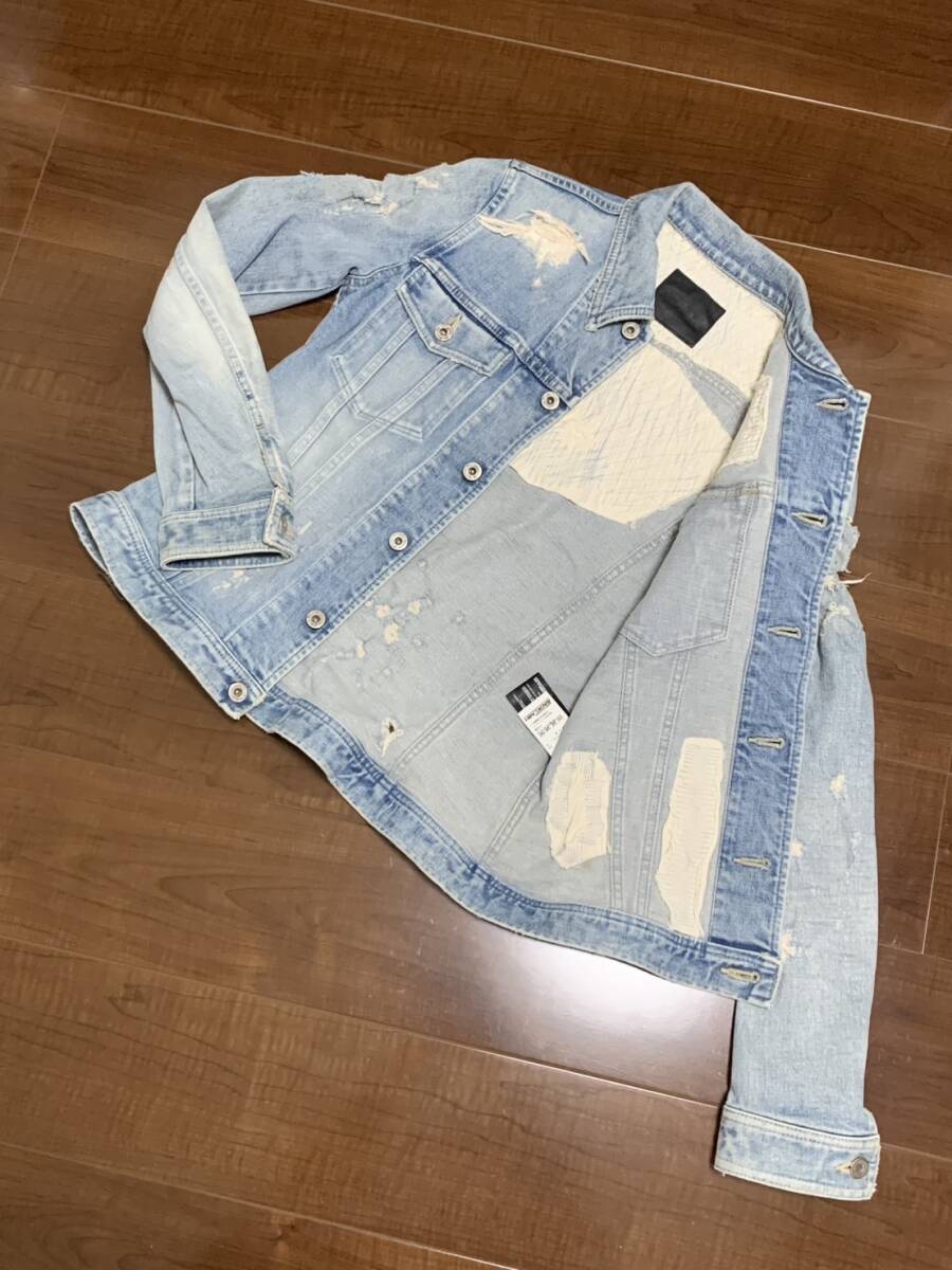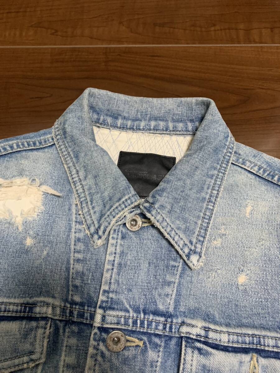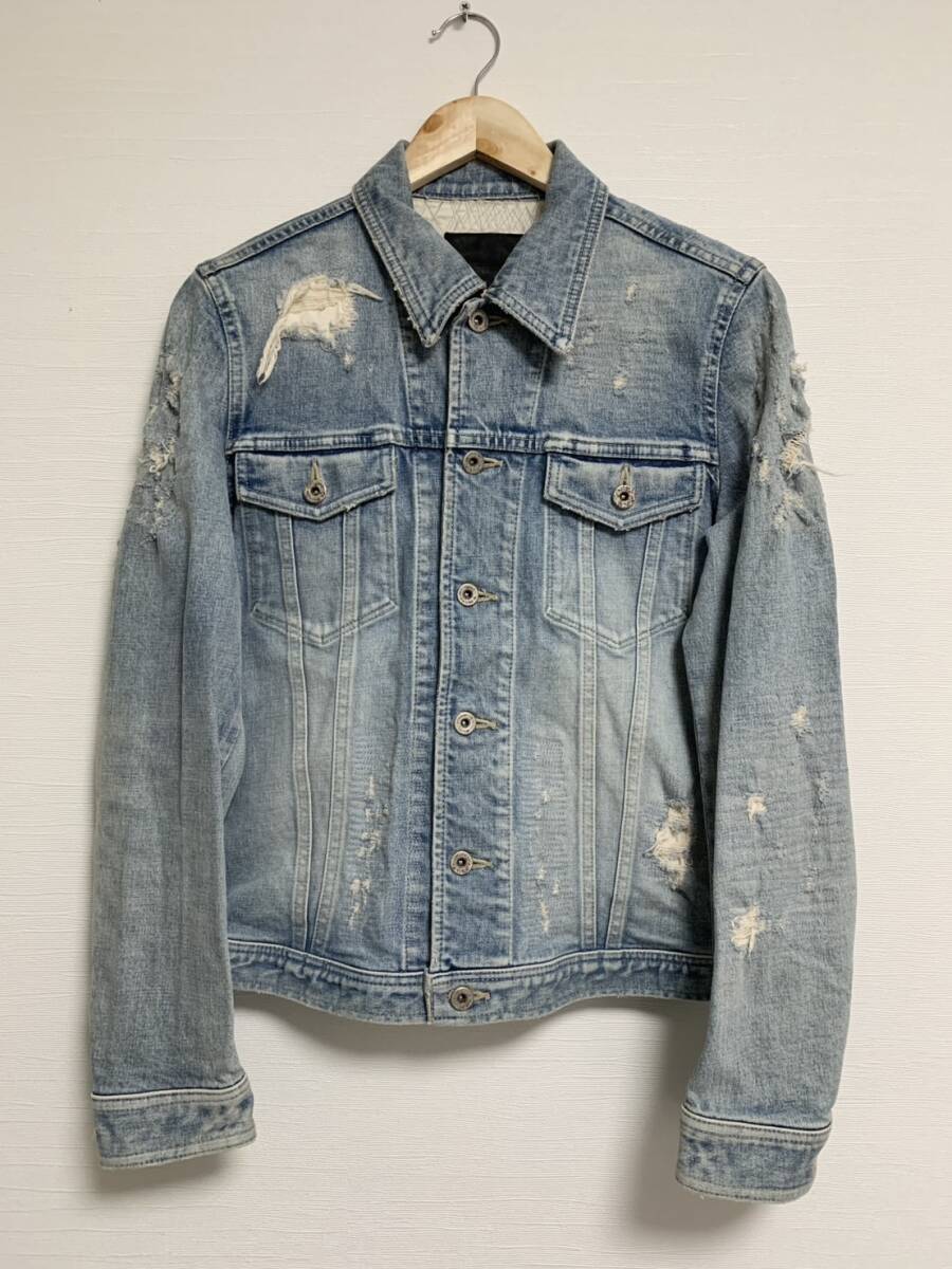 美品☆[BACKLASH] 定価52,800 B'2nd別注 ダメージ加工 レザーベルト ストレッチ インディゴデニムジャケット S B1483-GJKT バックラッシュ