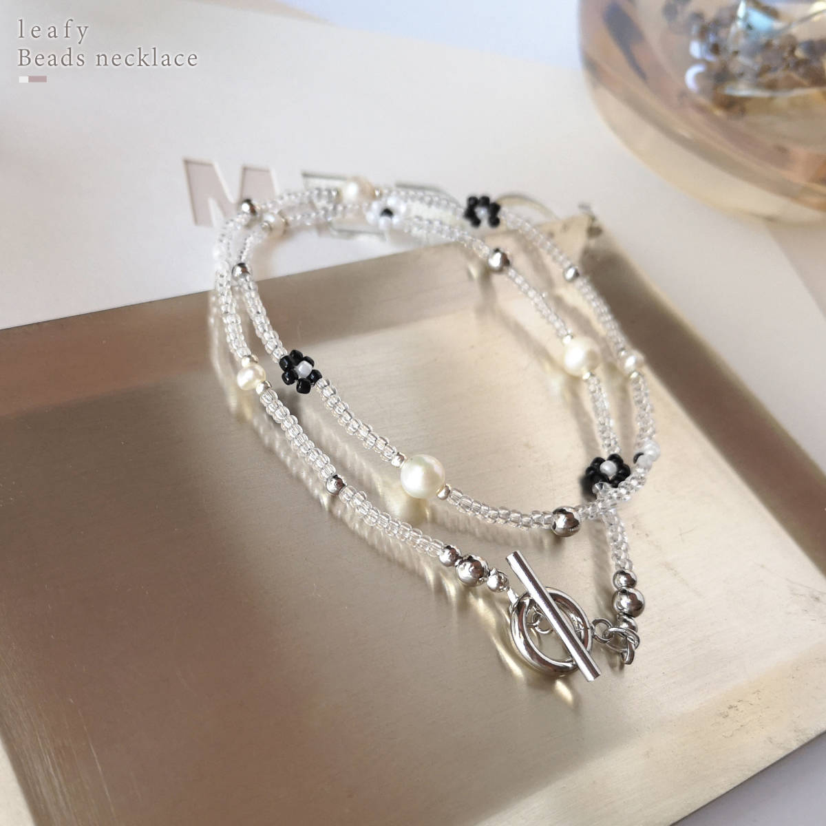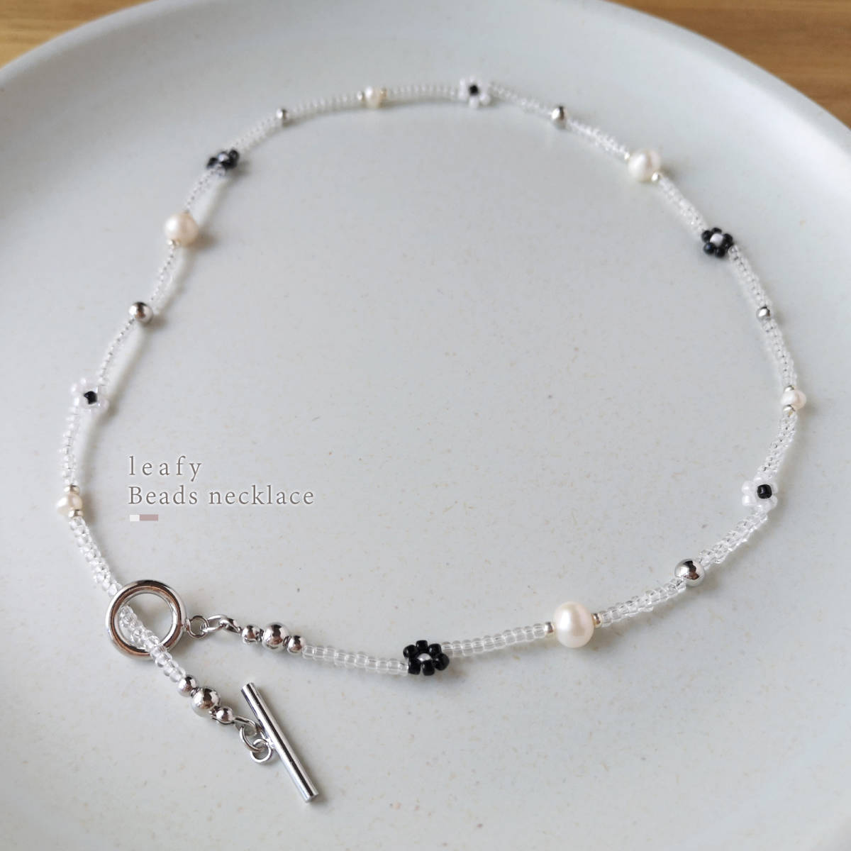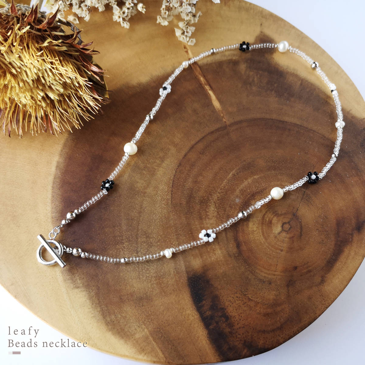 ◎復刻◎silver&monotone 淡水パールのビーズネックレス ビーズアクセサリー マンテル モノトーン シンプル
