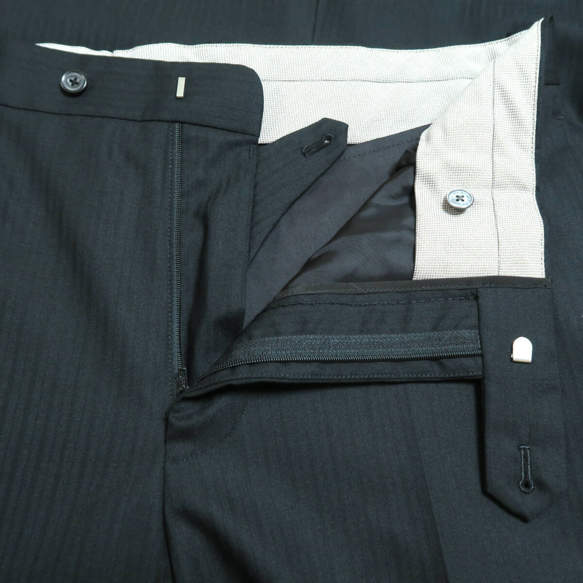 | 五大陸のレギュラーシルエットのスーツです。 程よいシェイプ感があります。パンツの裾は少しテーパードしてスッキリしています。 シングル 半裏仕立て ノッチドラペル フロントボタン 2つ 襟、ポケットにハンドメイド風ステッチ ベント サイド 内ポケット 5箇所 ウエストをシャープに見せてくれるノータックでスタイリッシュにきれいなラインを表現してくれます。 | ||