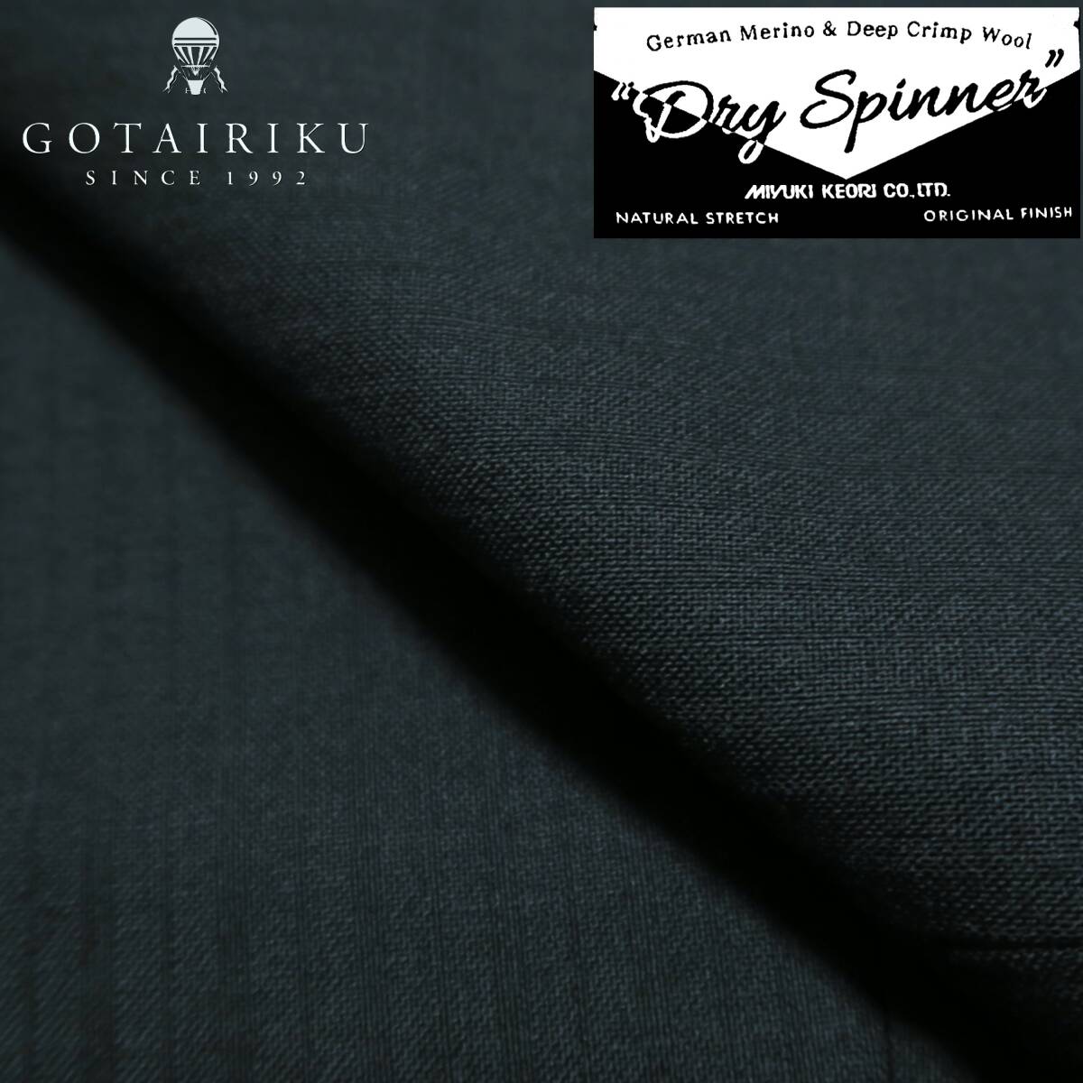 | 【五大陸定番素材】DRY SPINNER 素材原料からオリジナルの物作りをする五大陸の定番素材「ドライスピナー」を日本の高級毛織物メーカーである御幸毛織で織り上げています。 天然木の機械や天然石鹸使った洗いで抜群の風合いと光沢感が特徴です。 | ||
