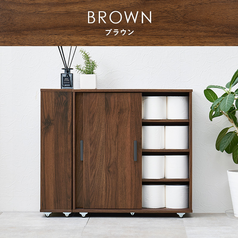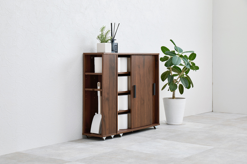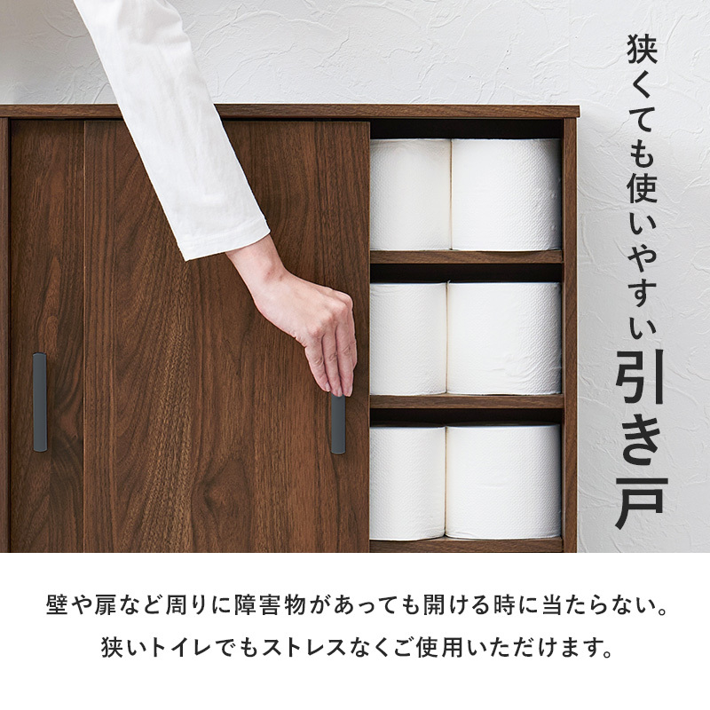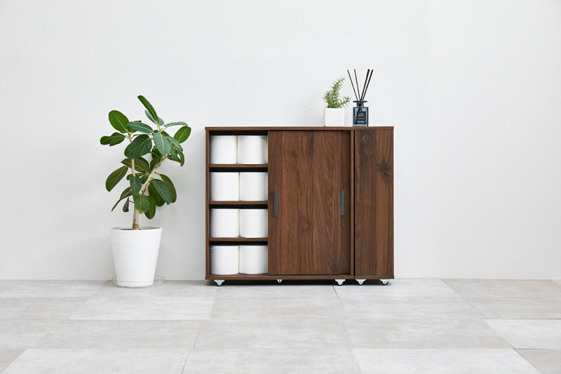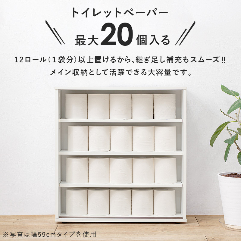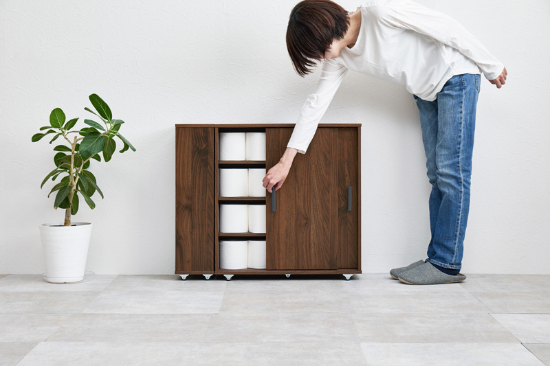 大きめのペーパーロールも入る収納棚は高さを変えてアレンジ可能。