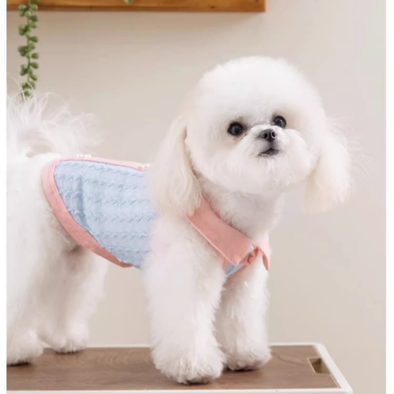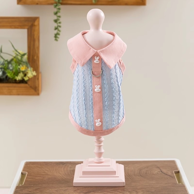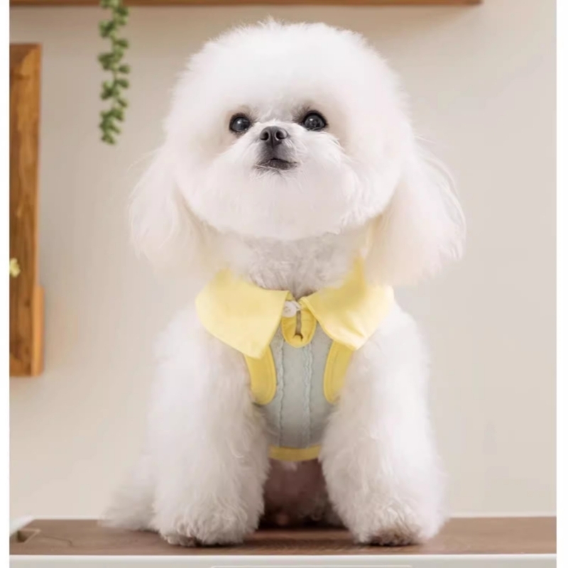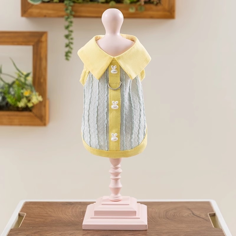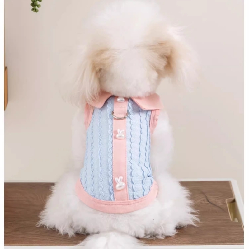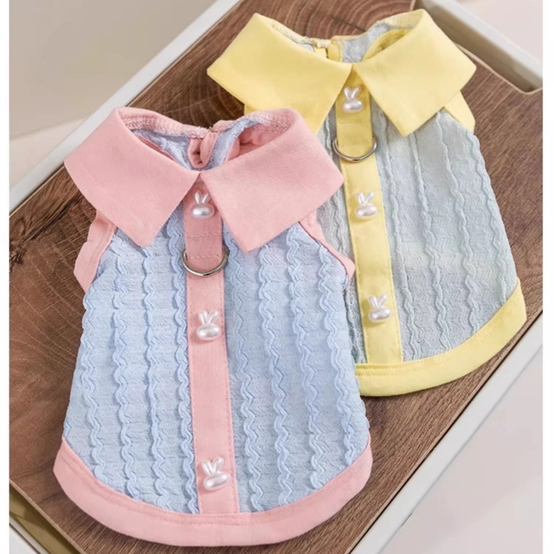 犬服 春夏 ポロシャツ風 小型犬 ハーネスベスト付き 薄手 通気性抜群 着脱簡単 ウサギ飾り付きボタン付き かわいい おしゃれ ペット服 猫用 | |||