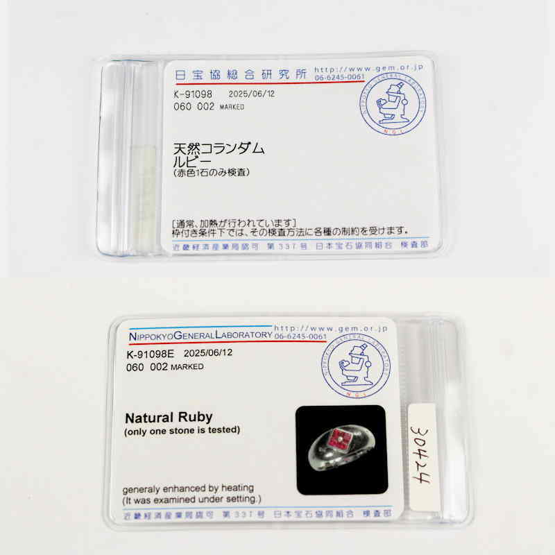 宝石名 | ルビー《0.60ct》ダイヤモンド《0.02ct》 |