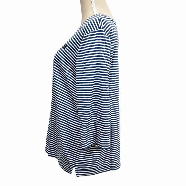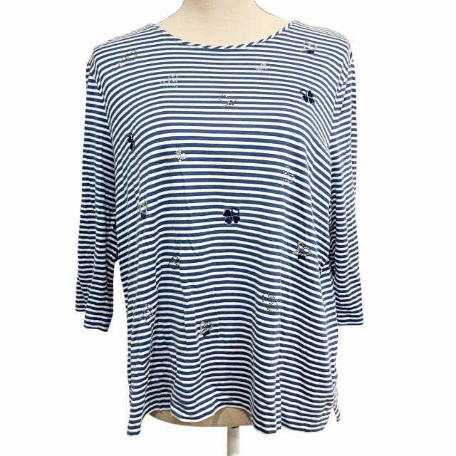 レリアン Leilian Tシャツ カットソー ボーダー 刺繍 スパンコール 白 ホワイト 青 ブルー 17+ 約XL 大きいサイズ ■GY09 レディース