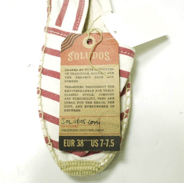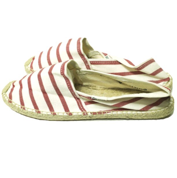 新品 SOLUDOS ソルドス キャンバスボーダーエスパドリーユ FOR102 38(24-24.5cm) WHITE/RED ストライプ スリッポン シューズ g12895