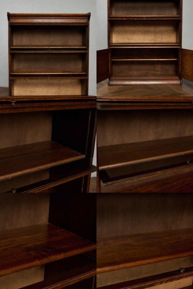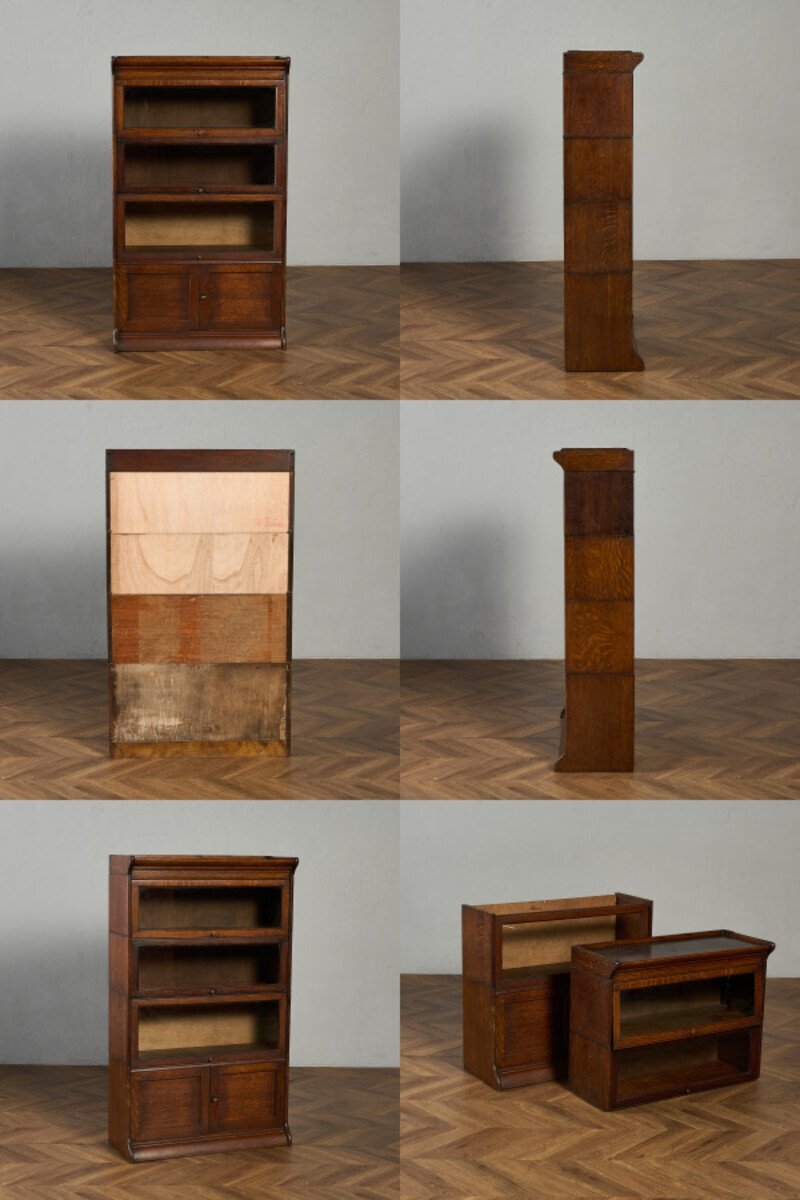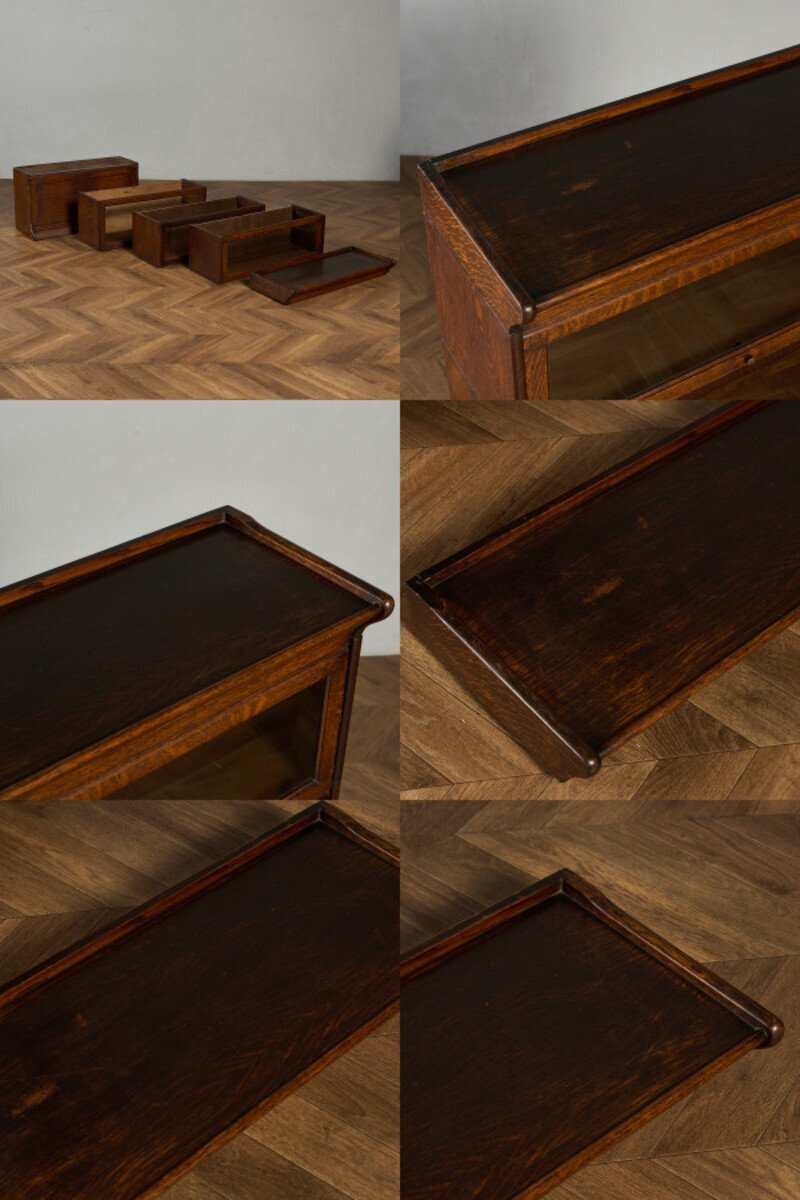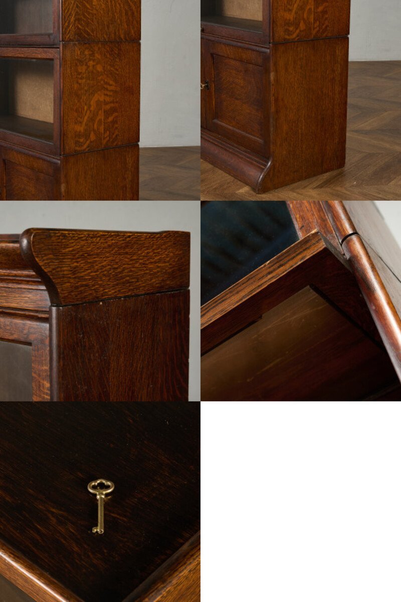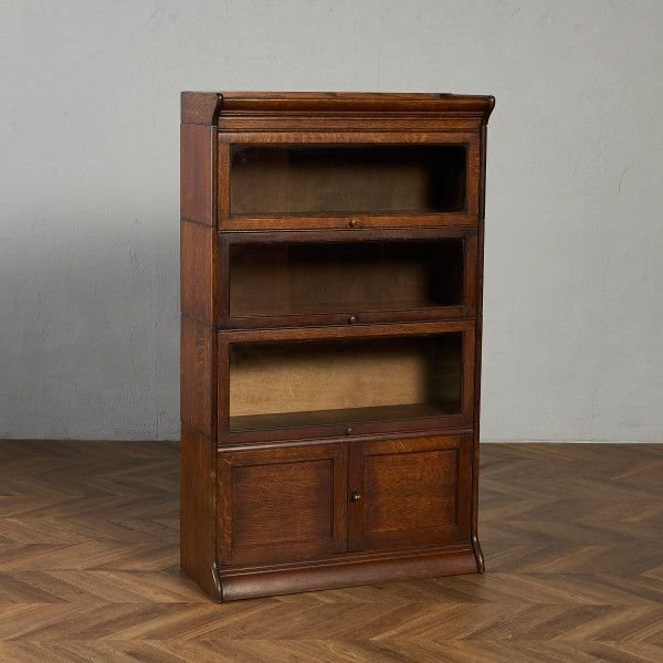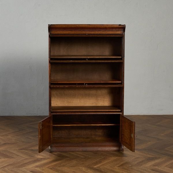 英国アンティーク スタッキングブックケースです。 使い勝手の良さとデザイン性により、当時から非常に人気のあったブックケース。扉部分は上に持ち上げ、中に押し込んで収納できるフラップ式と開き扉の二種類になっており、漫画本や雑多な書籍を見せない収納、雑貨や小物などを見せる収納として使い分けて頂けます。また、簡単な積み上げるタイプの組み立て式になっており、不要時の収納性に優れている他、手入れの際も細部まで楽にお掃除ができます。 |