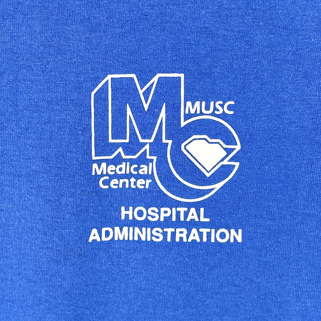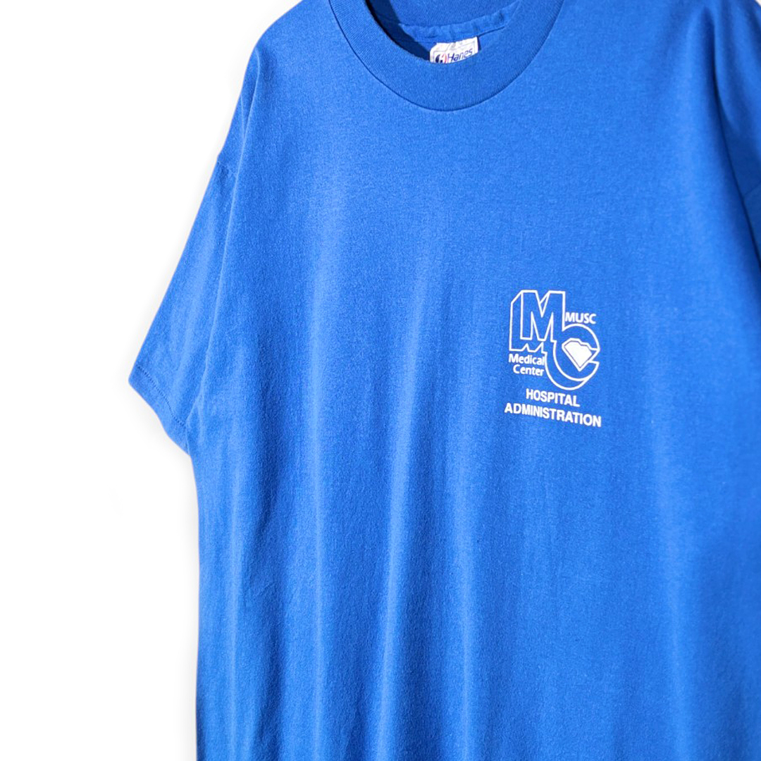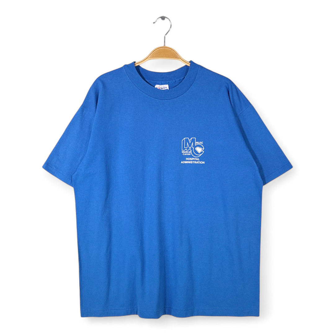 【送料無料】80s ヘインズ USA製 ヴィンテージTシャツ ナンバリング 背番号 MUSIC MEDICAL CENTER シングルステッチ ブルー XL @BZ0457