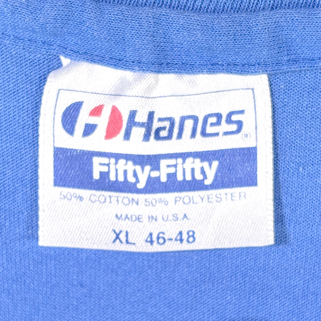 80s ヘインズ USA製 ヴィンテージTシャツ ナンバリング 背番号 MUSIC MEDICAL CENTER シングルステッチ ブルー HANES メンズXL 古着 @BZ0457