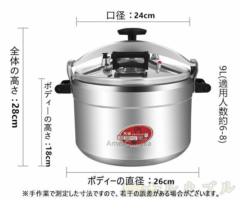 高品質★ 圧力鍋 9L 業務用 アルミニウム合金 圧力鍋 多機能調理器具 キッチン用品 ガス火/炭火