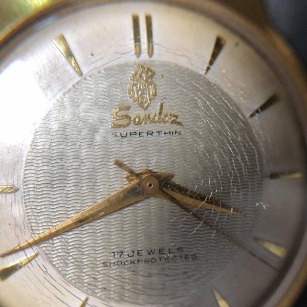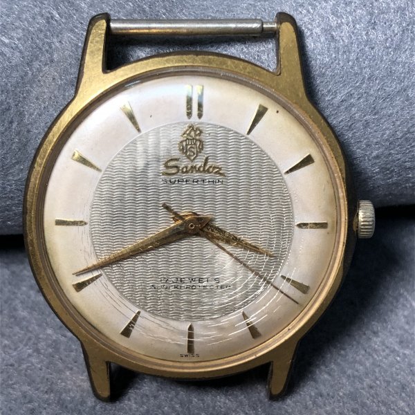 ▽▼ Sandoz サンドス SUPERTHIN 17石 3針 機械式 手巻き スイス製 ラウンド バーインデックス メンズ 紳士 腕時計 ジャンク