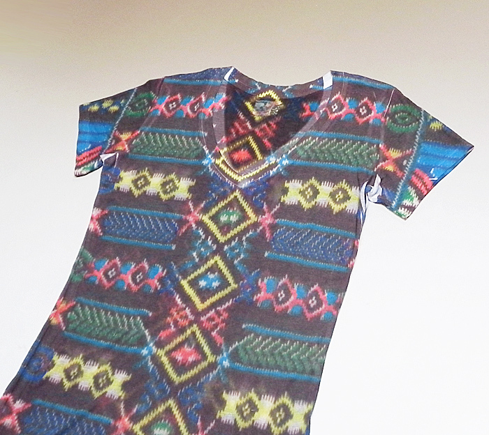 涼しげな極薄ニットのオールオーバープリントチュニックです。