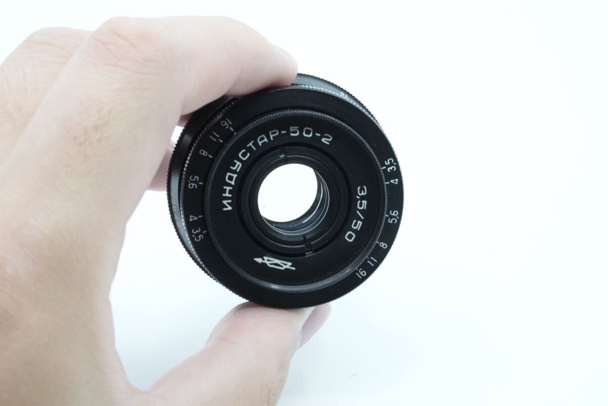 INDUSTAR レンズ特有の薄い拭きスレ見られる場合が御座いますが、写りに影響は及ぼさない程度の軽微なものです。