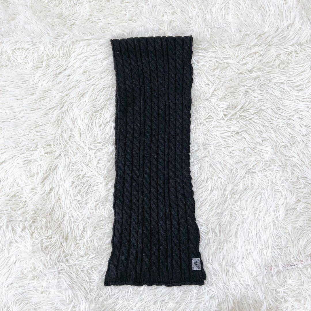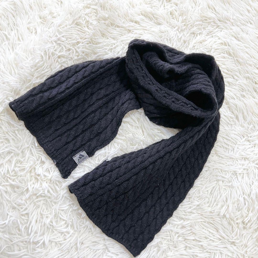 《アディダス》 ケーブル編みニットマフラー ロゴタグ 通園 通学 防寒 秋冬