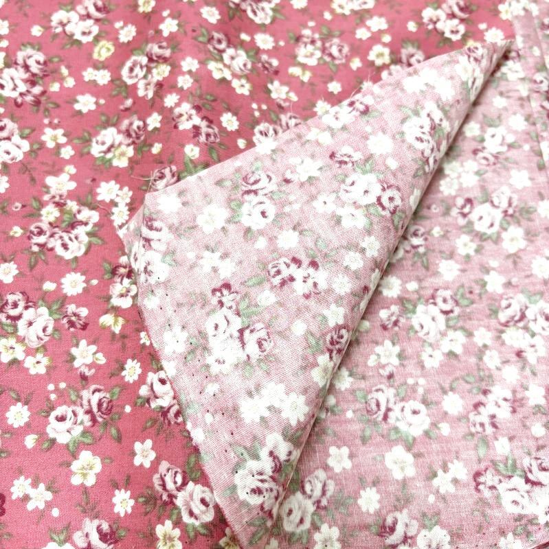 落ち着いたピンクパープルをベースに、ピンクや白のバラ・デイジー風の小花