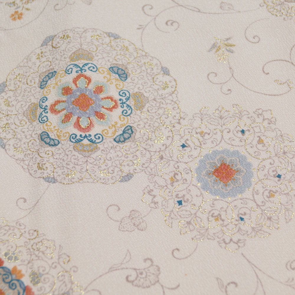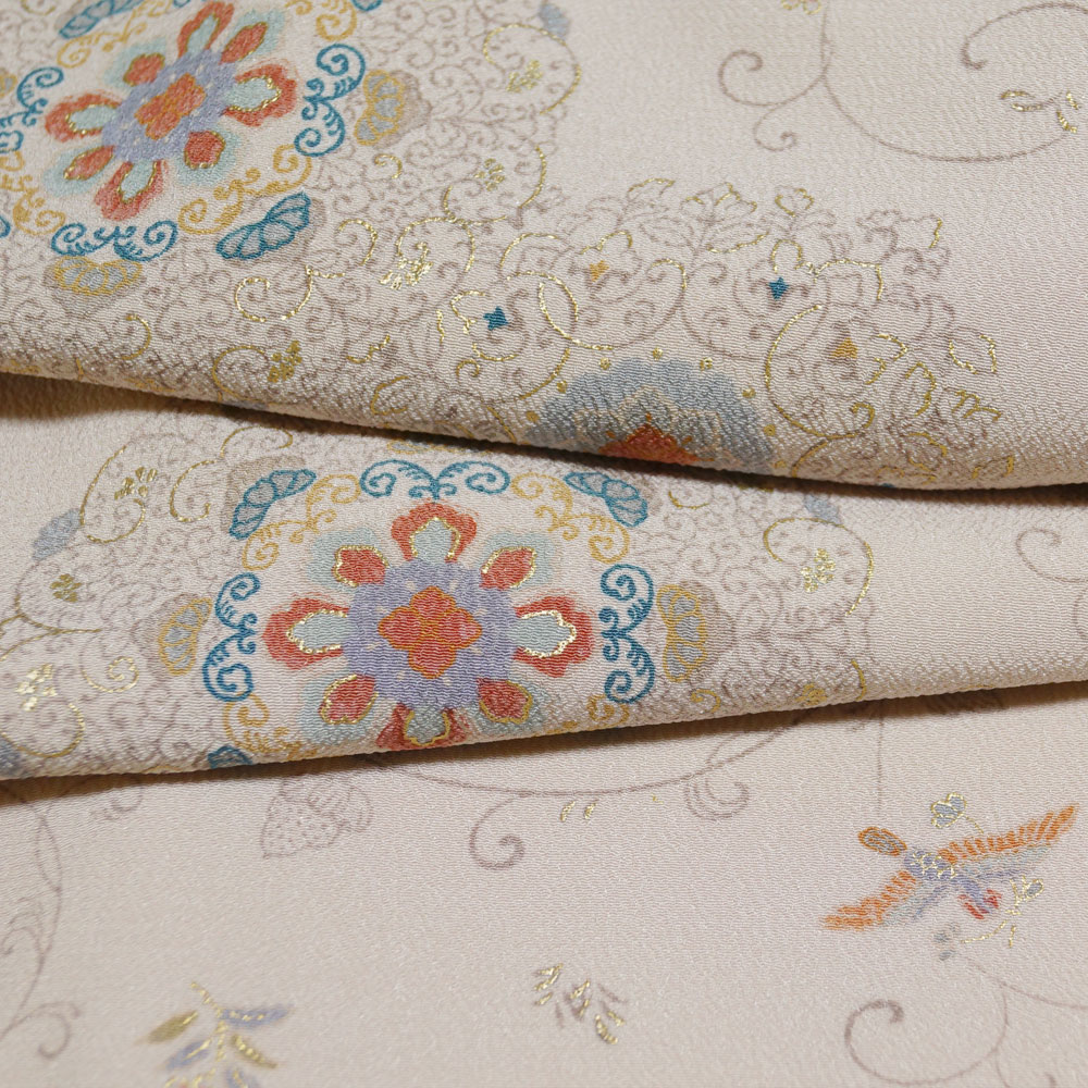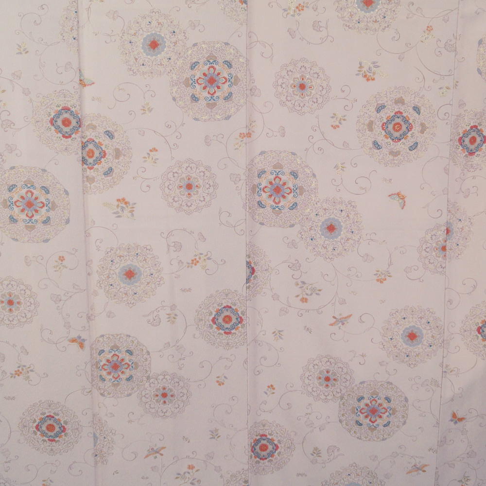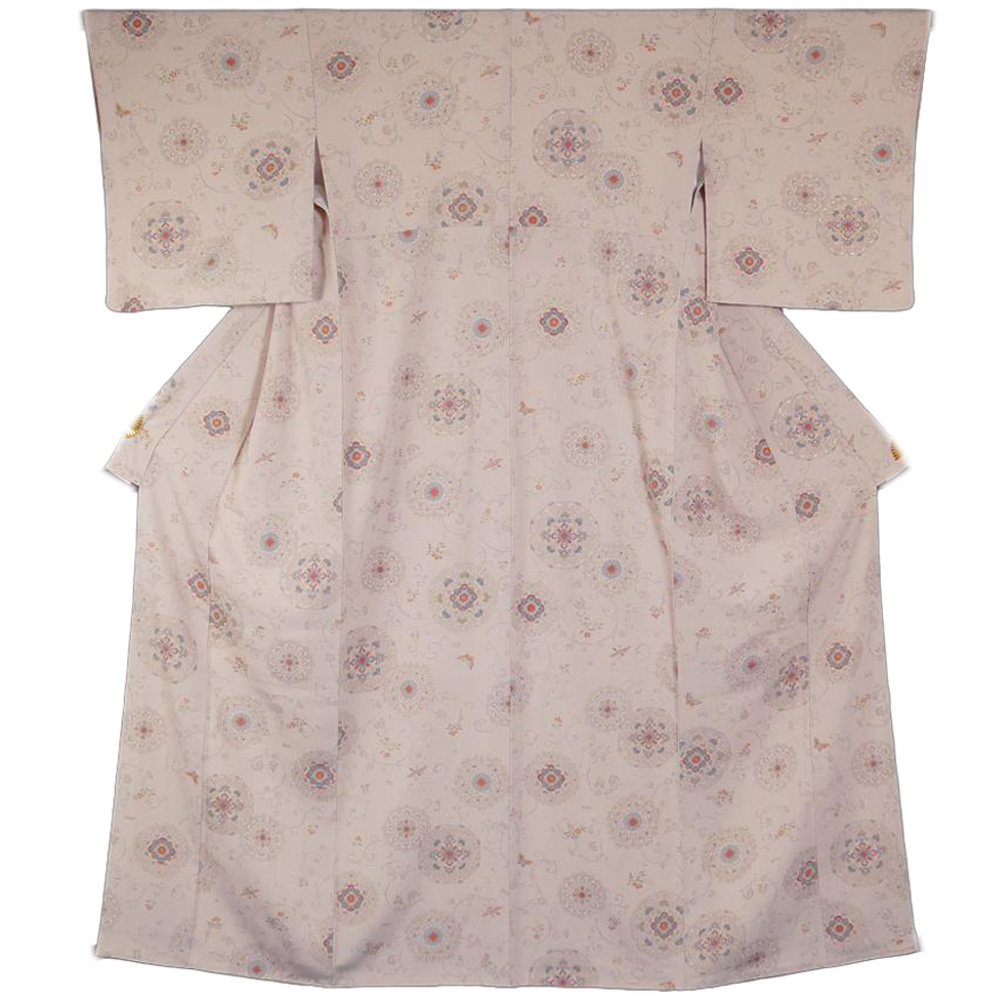 | 商品 説明 | 落ち着いた白藤色系のちりめん地に華文に更紗、唐花、鳳凰、胡蝶などの模様が染められた小紋です。一枚はお手元に、最高級の洗える着物専門店 きもの英(はなぶさ)製、タグも付いております。ご家庭でお洗濯いただけます。 |