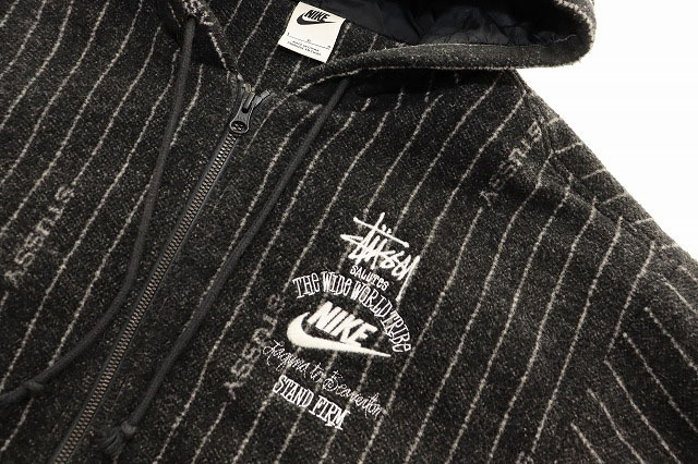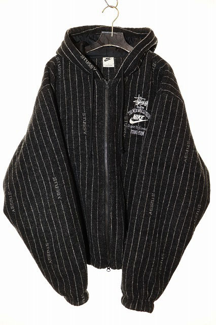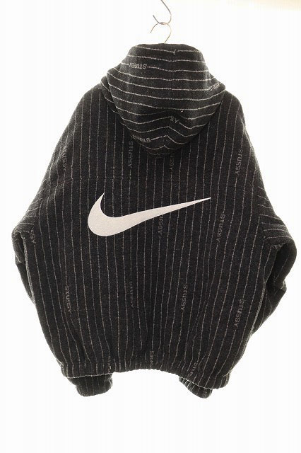 ナイキ NIKE × STUSSY STRIPED WOOL JACKET BLACK L DR4023-010 ステューシー ストライプ ウール ジャケット フーディ ブラック ●250712 メンズ