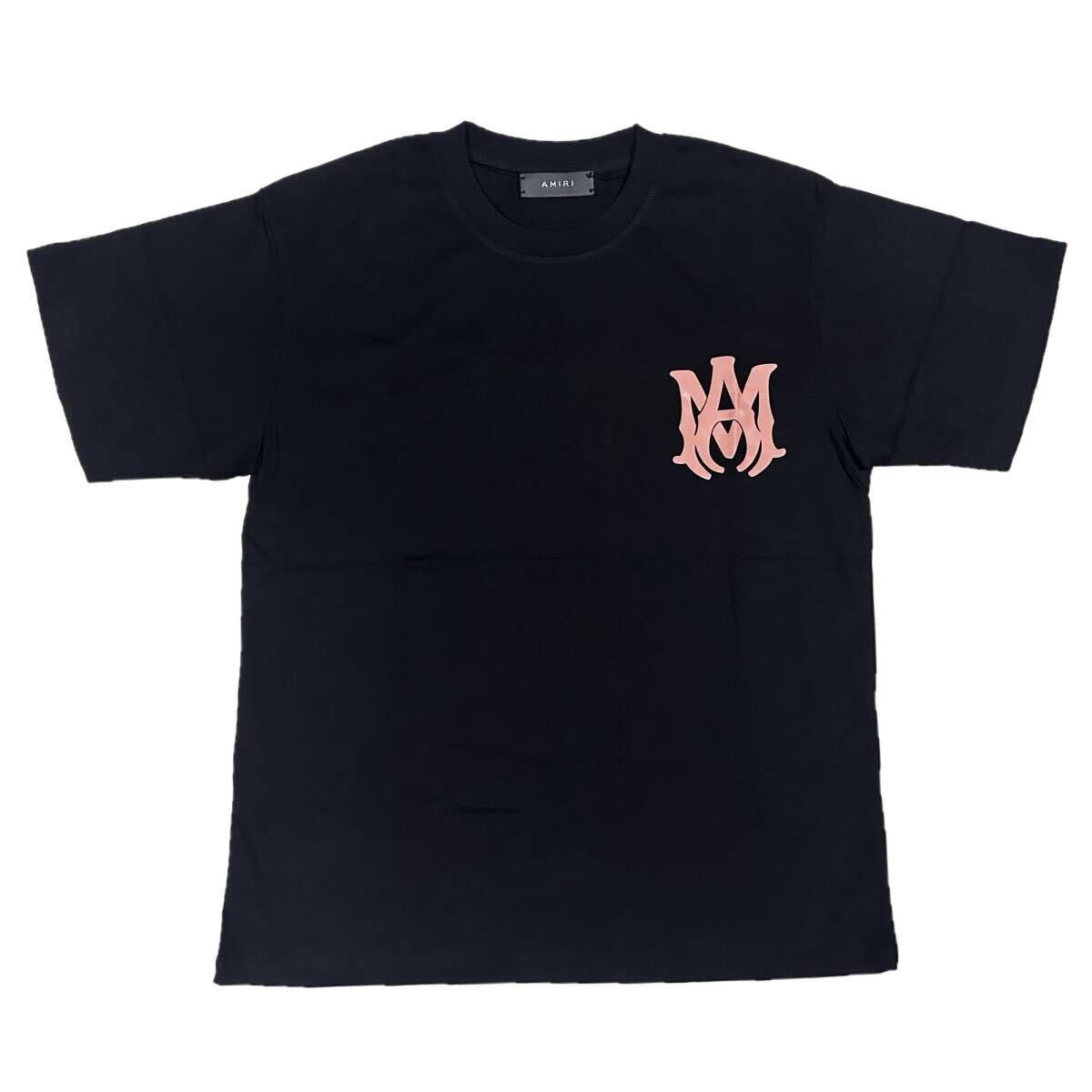 [並行輸入品] AMIRI アミリ MA CORE ロゴプリント 半袖 Tシャツ (ブラック/ピンク) (M)