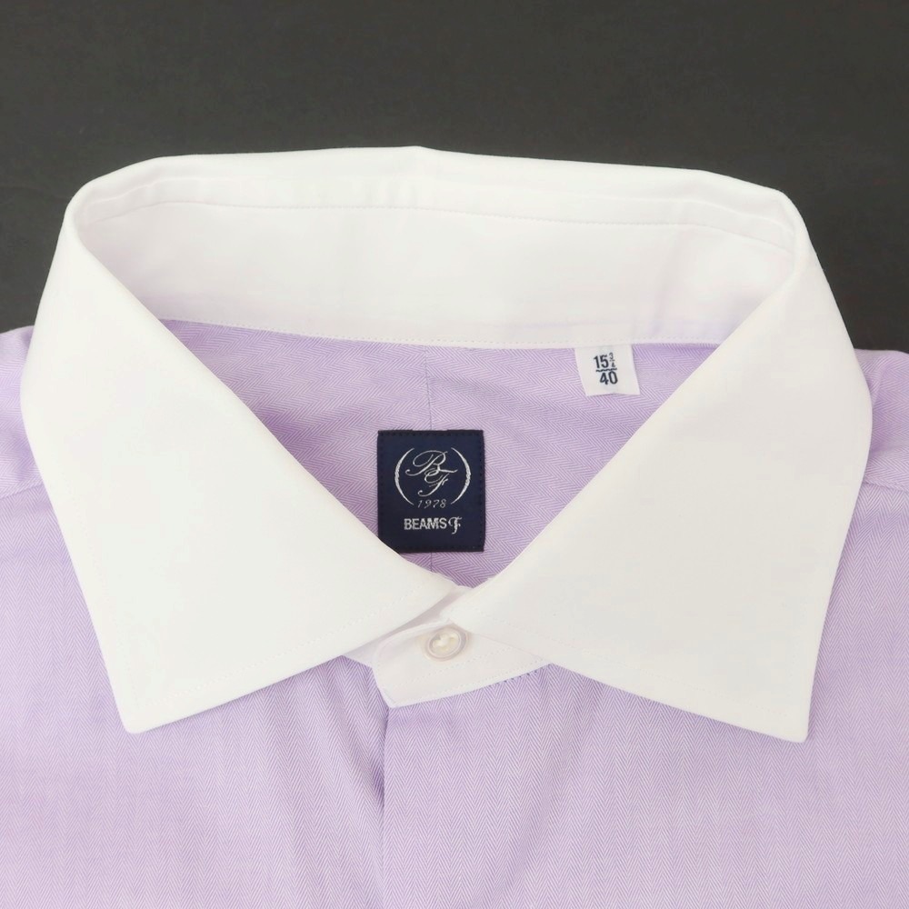 【中古】ビームスエフ BEAMS F コットン セミワイドカラー クレリック ドレスシャツ ラベンダーxホワイト【サイズ40】