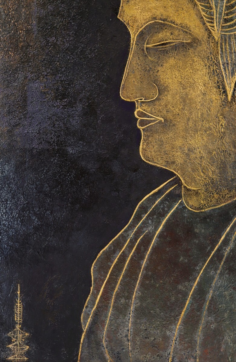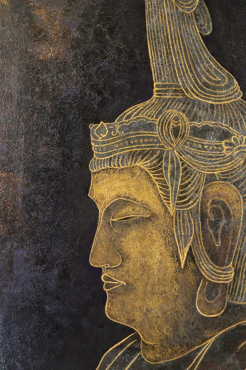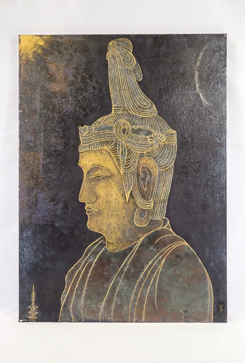 真作 豊田和史 展覧会出品作 日本画「浄」画寸 20号 愛知県出身 伝統的な日本画の技法を用いながら現代的な感性も取り入れた仏画作品 11118