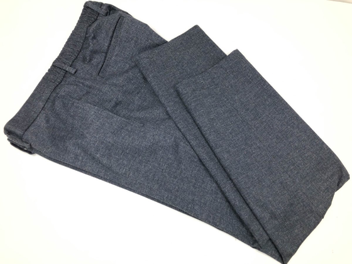 ・スラックス・・・ウエスト実寸約84~90センチ(伸縮性があります)、股上約26センチ、渡り幅約31センチ、股下約70センチ、総丈約93~94センチ、裾幅約17.5センチ、裾はたたき仕上げです。