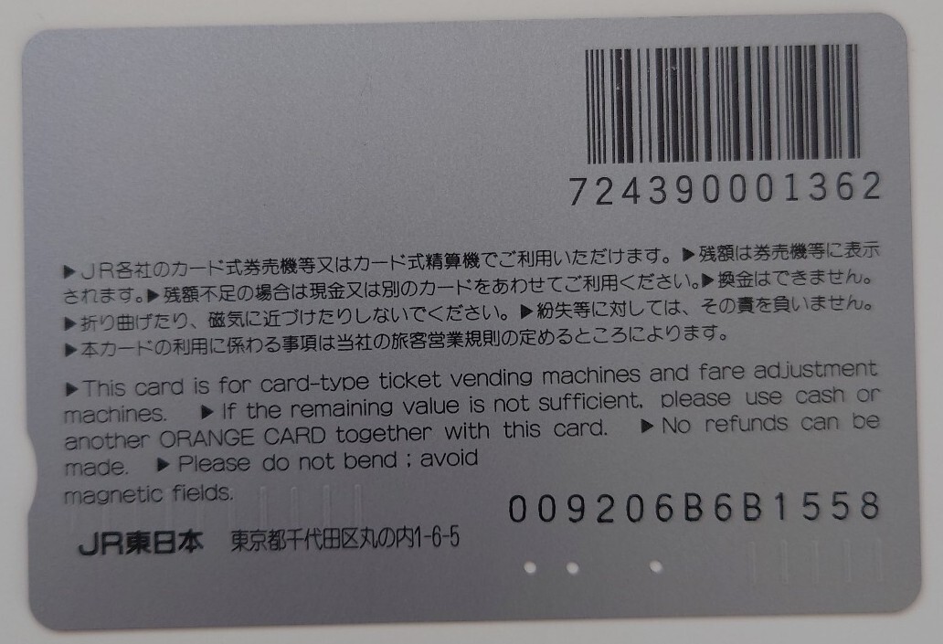 【使用済】オレンジカード Friendly&Attractive Zone BOSO JR東日本