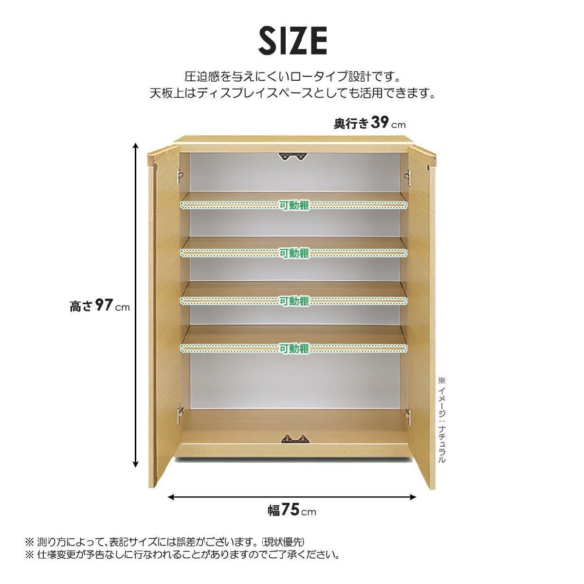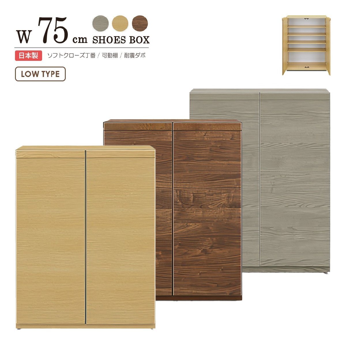 下駄箱 シューズボックス 完成品 日本製 ロータイプ 大容量 幅75cm 木製 おしゃれ 玄関収納 可動棚 ナチュラル