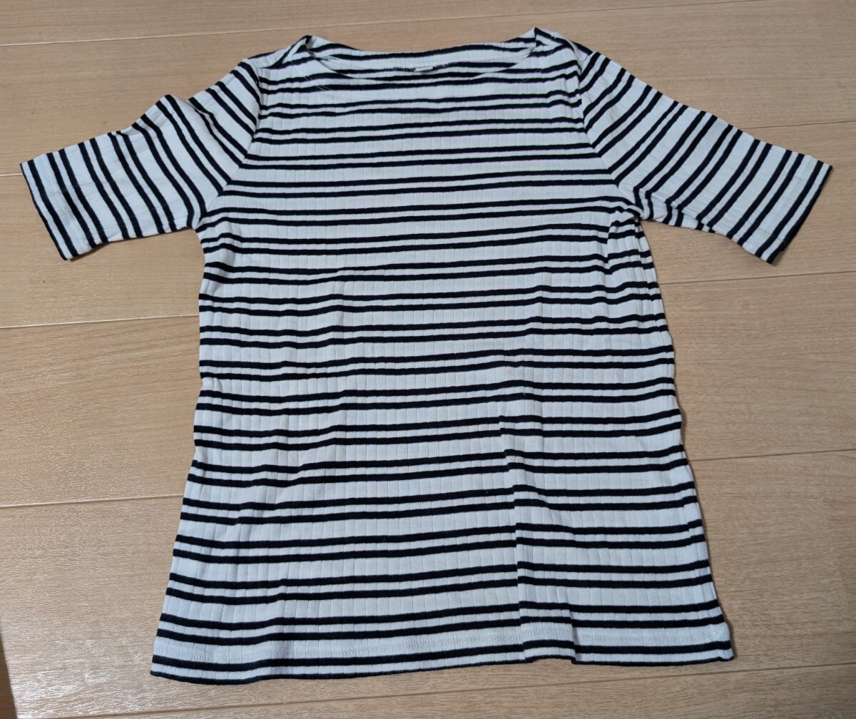 こちらは、ユニクロのリブボーダーボートネックT(5分丈)Мサイズになります。