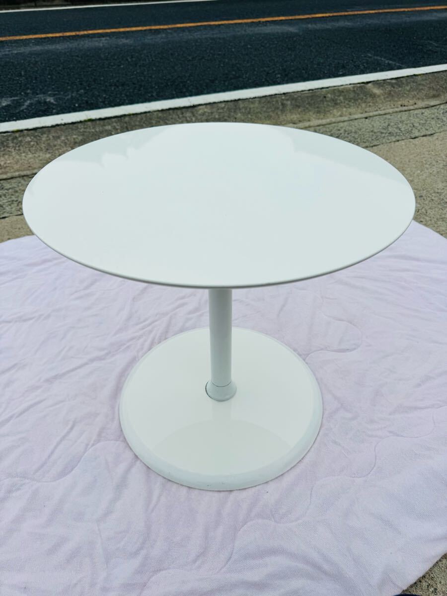 真っ白のラウンドテーブルとなっており、シンプルでソファやチェアとも合わせやすいデザインかと思います。