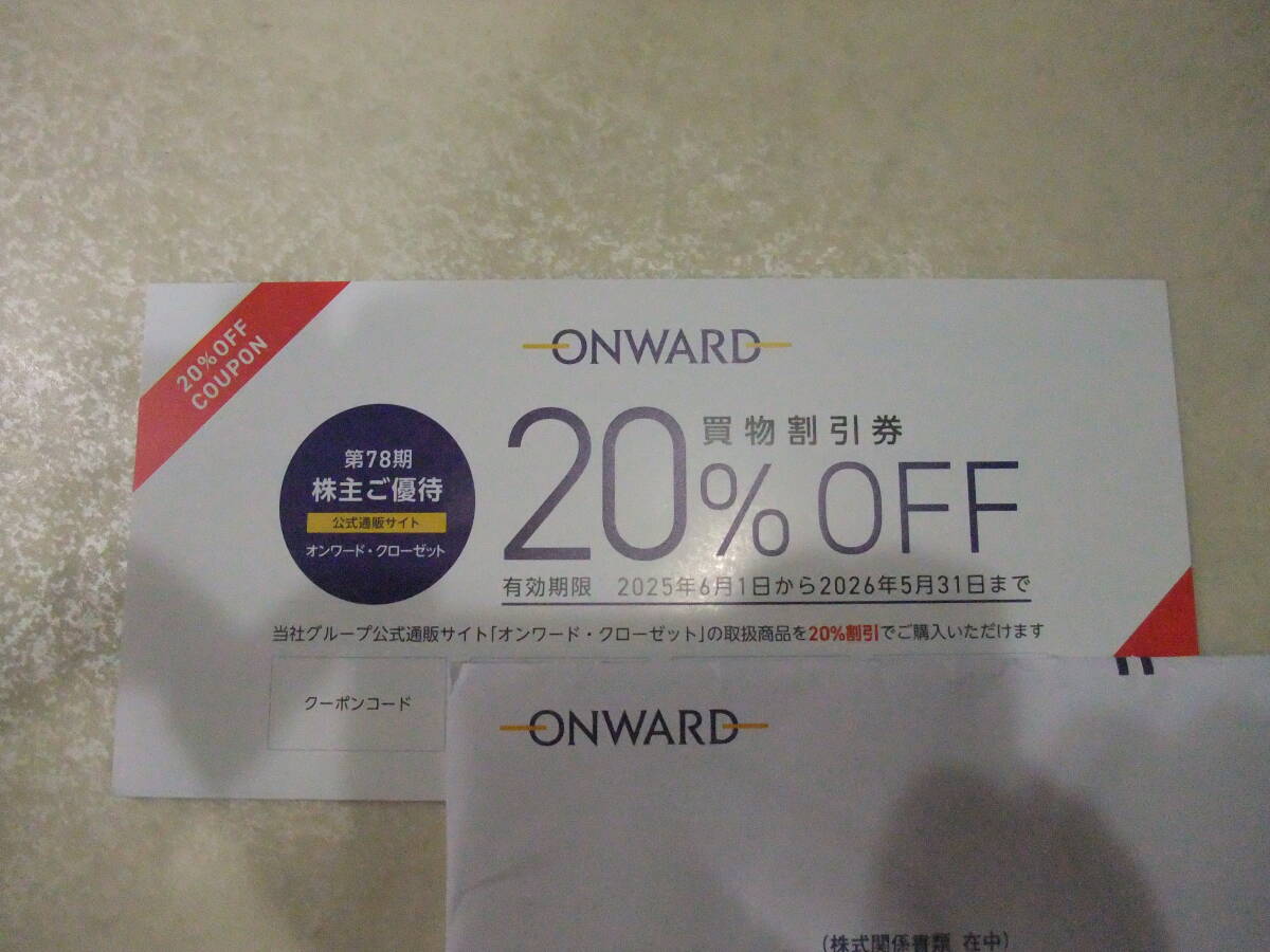 オンワード 株主優待券 20%OFF買物割引券6回分になります。